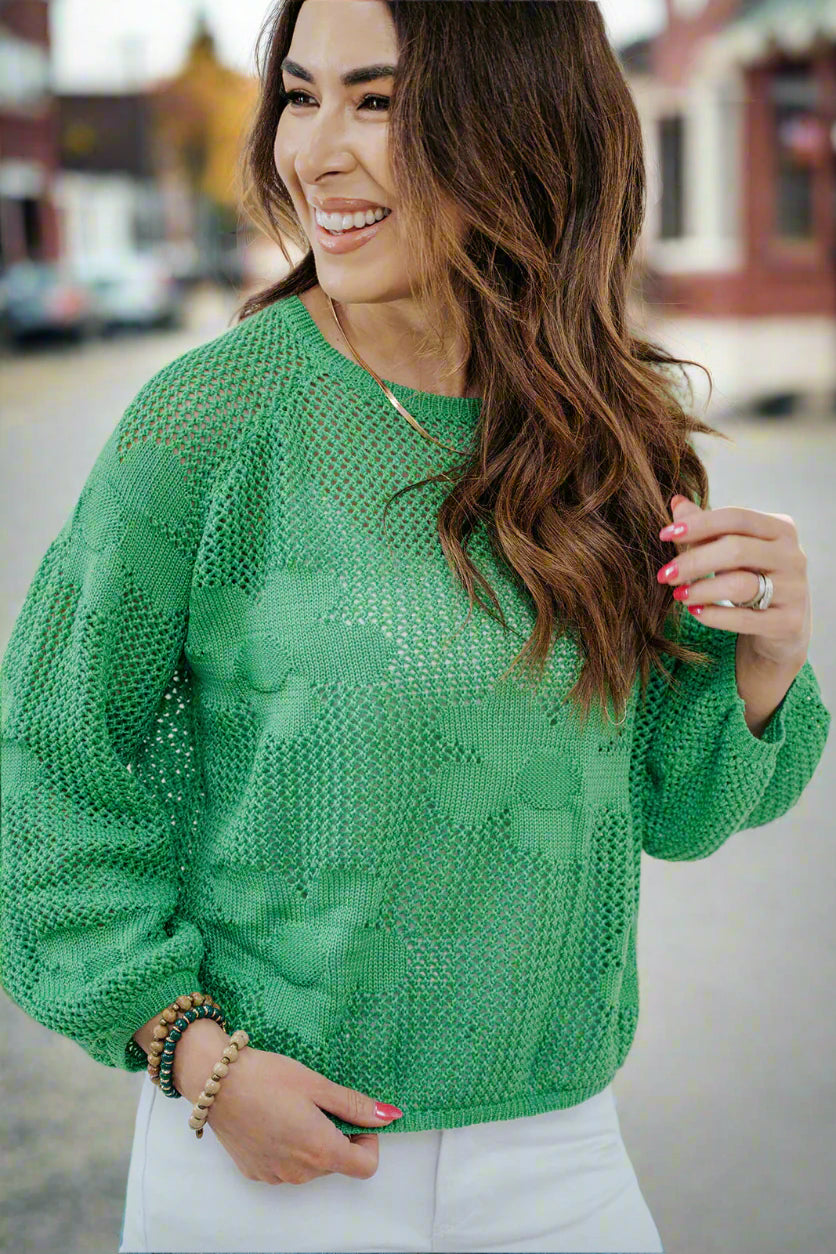 Sweaters aren't just for the cooler months! This open-knit sweater can be worn in the warmer months over a tank, dress, or swimsuit! We love how easily this can be dressed up or down for everyday wear!