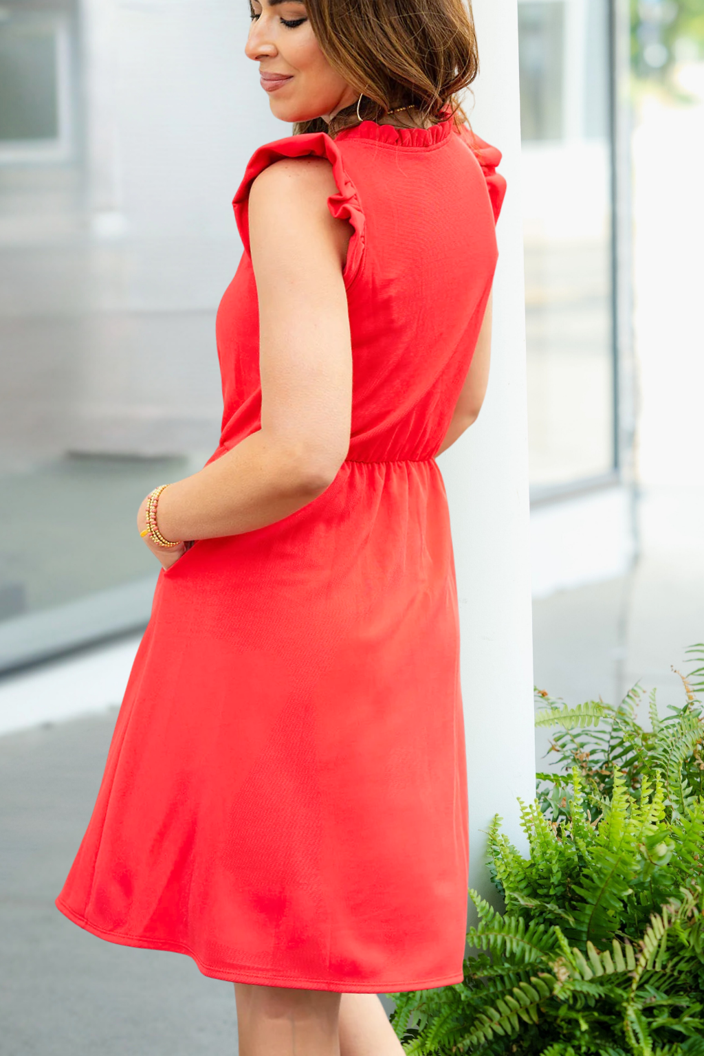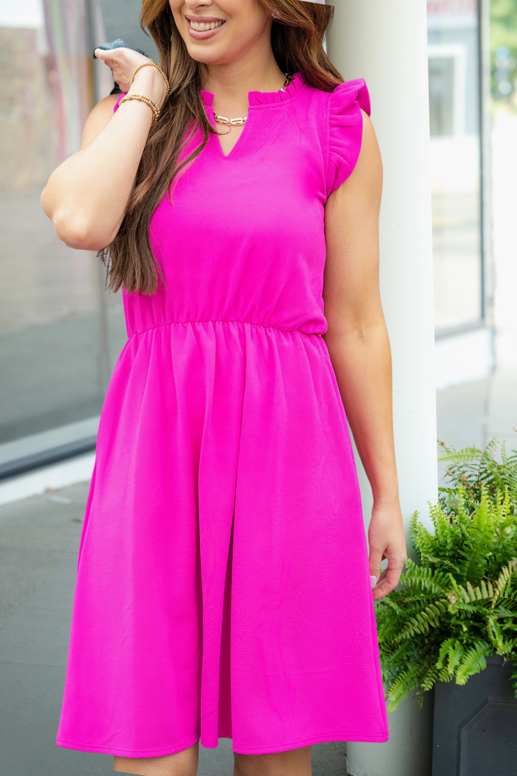 Elevated Cinched Ruffle Trim V Dress