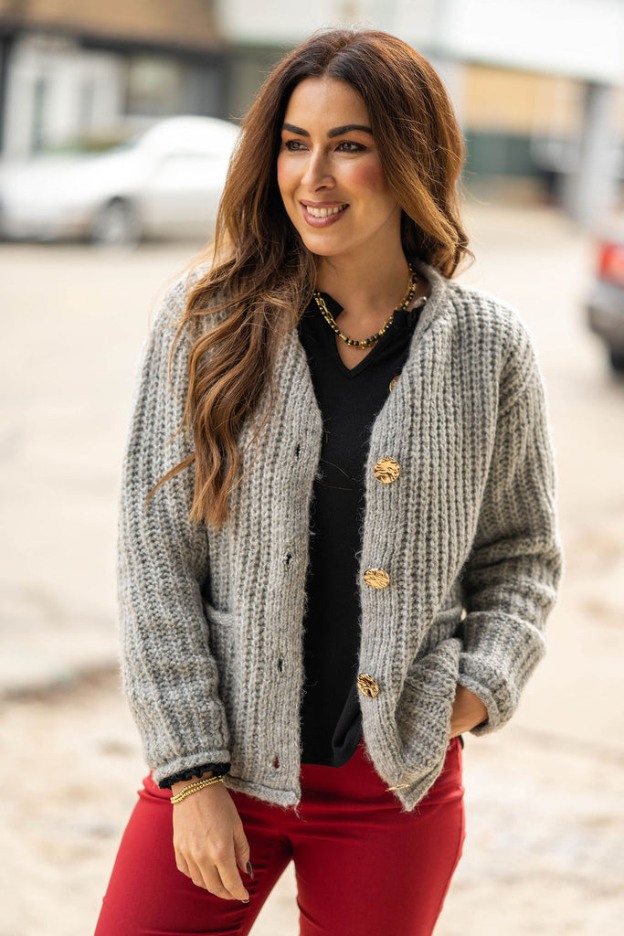 A cozy knit cardigan made for effortless layering and timeless style. Designed with soft texture and classic button details for an easy, elevated look.