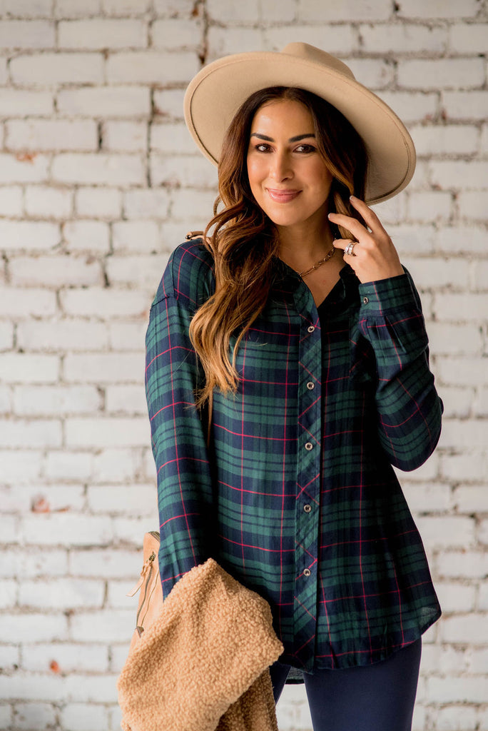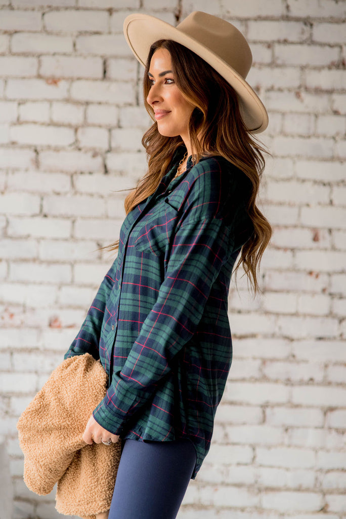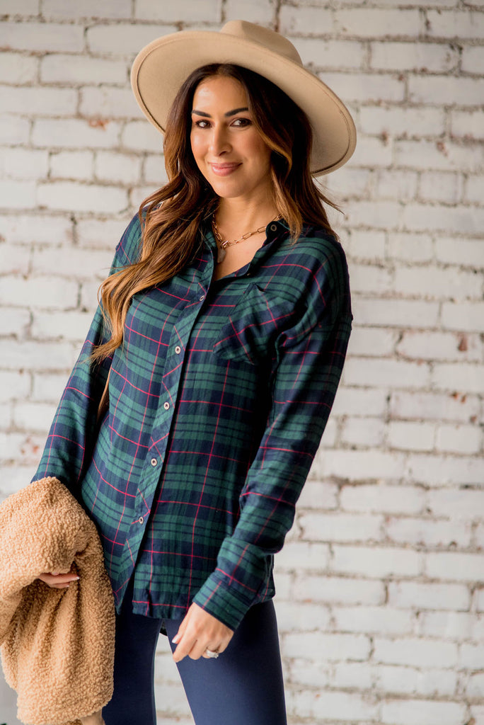 Plaid is always in style! We love the colors on this flannel! We love that this can be paired with denim or our Betsey's Jeggings and a statement necklace for the office or the classroom, or worn open over top of a basic or graphic tee with leggings or joggers for a more casual look! Chilly? Add a vest or cardigan!