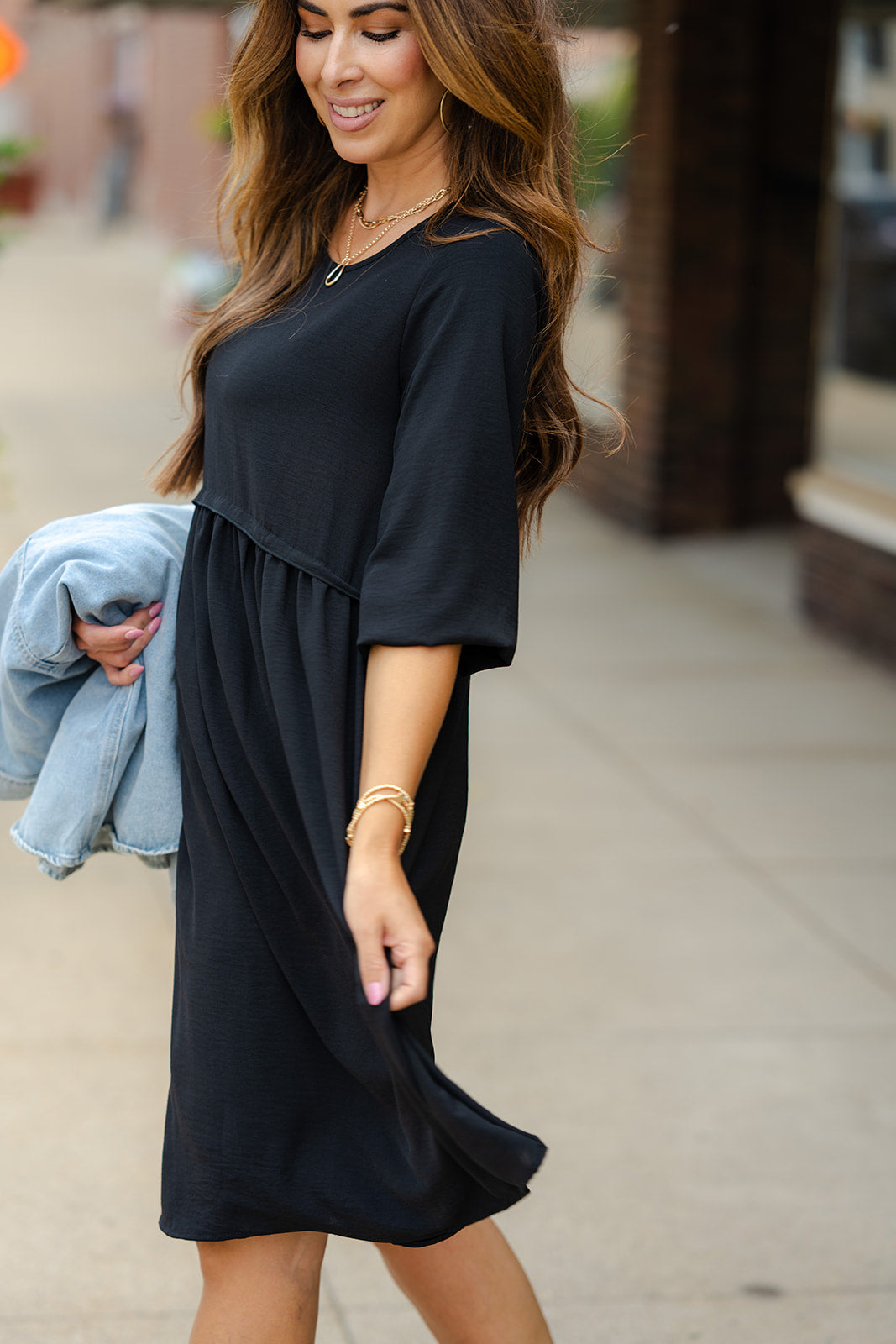 Faux Layered 3/4 Sleeve Dress