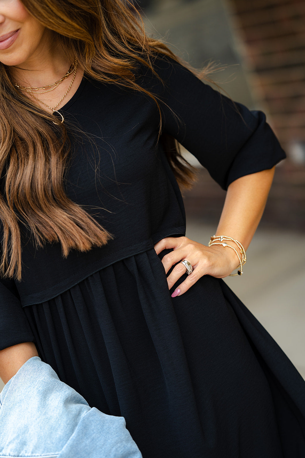 With the fun faux-layered look of a 3/4 sleeve top and skirt this dress is unlike all of the rest! Just simply add your favorite accessories and footwear to complete the look! Chilly? This goes great with a vest or jacket and leggings as well! The simplicity of this dress allows you to style it with ease for everyday wear!