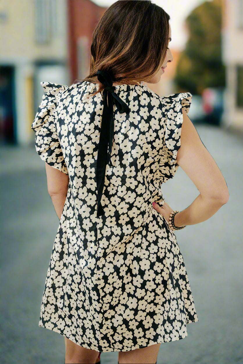 The fun floral and cinched trim detailing really come to life in this dress! This features cinched trim, and a tie-back detailing to bring it all together! Just add your favorite accessories and footwear for church, a wedding, date night, work, or anywhere! Pair with a blazer, cardigan, or jacket and boots to bring you into those cooler months. This one is sure to go fast!