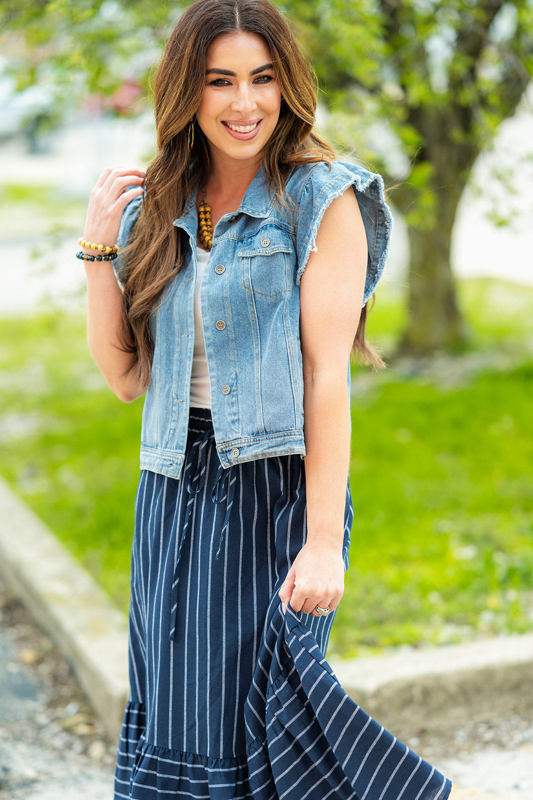 Add a touch of warmth and style to any look with this vest! The flutter trim really POPS and we love how it's elevated with the pockets! Throw this on over a dress, blouse, basic or graphic tee, anything!