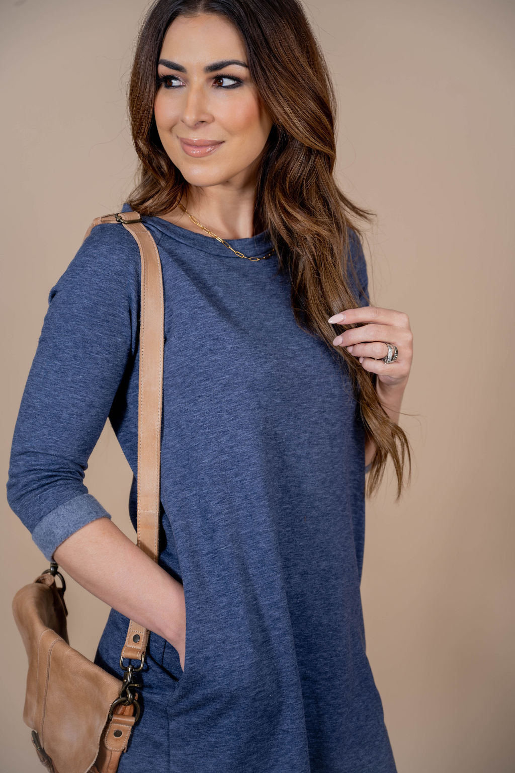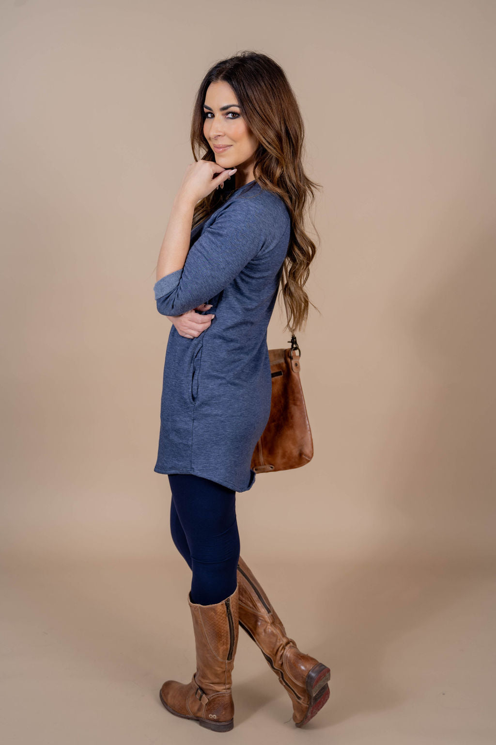 Heathered 3/4 Sleeve Sweatshirt Tunic