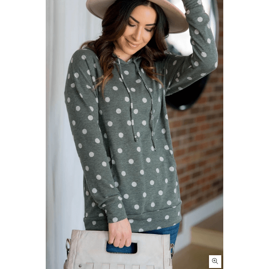 It is impossible to have too many hoodies! So comfy and perfect for those busy on the go days! This particular hoodie is lightweight, making it ideal to transition you between seasons, and features a cute polka dot print, setting it apart from the rest! Just add your favorite jeans or leggings for a quick and comfy look!