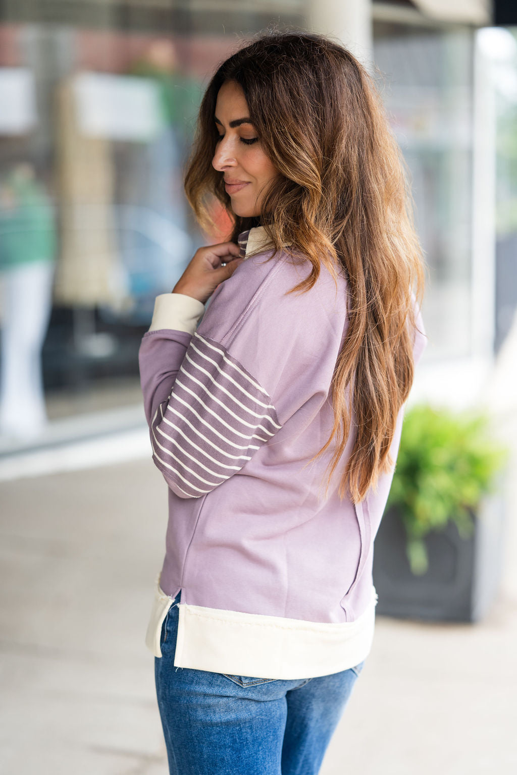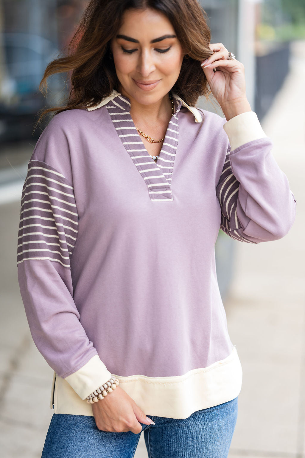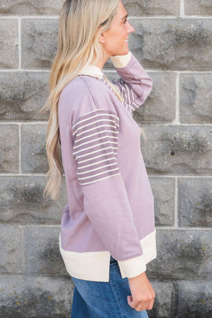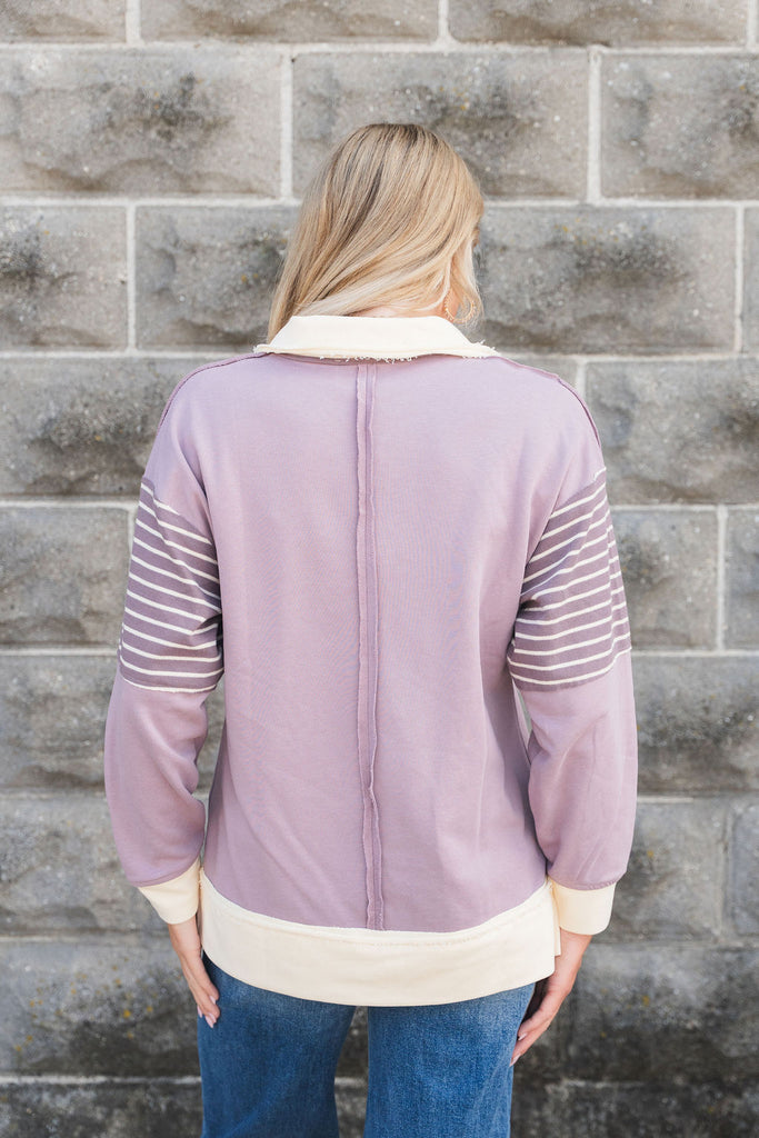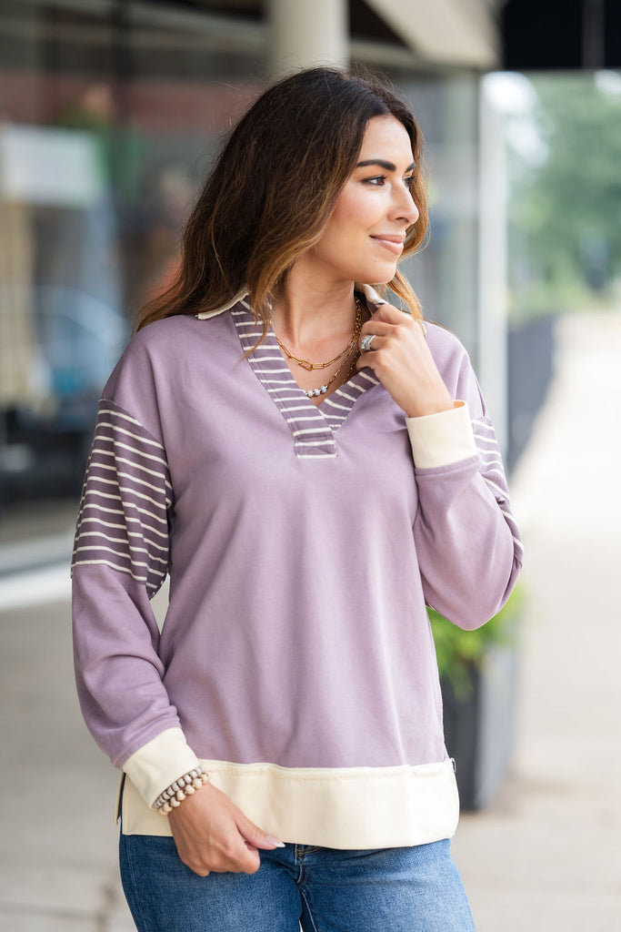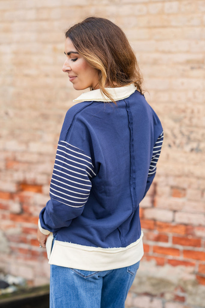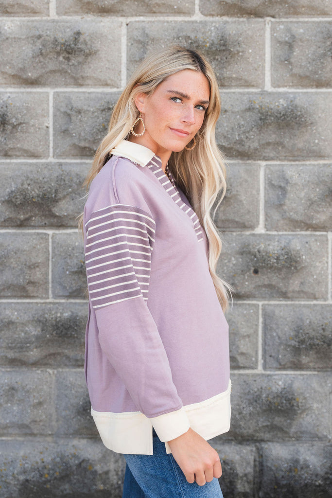 Hint Of Stripes Collared Sweatshirt