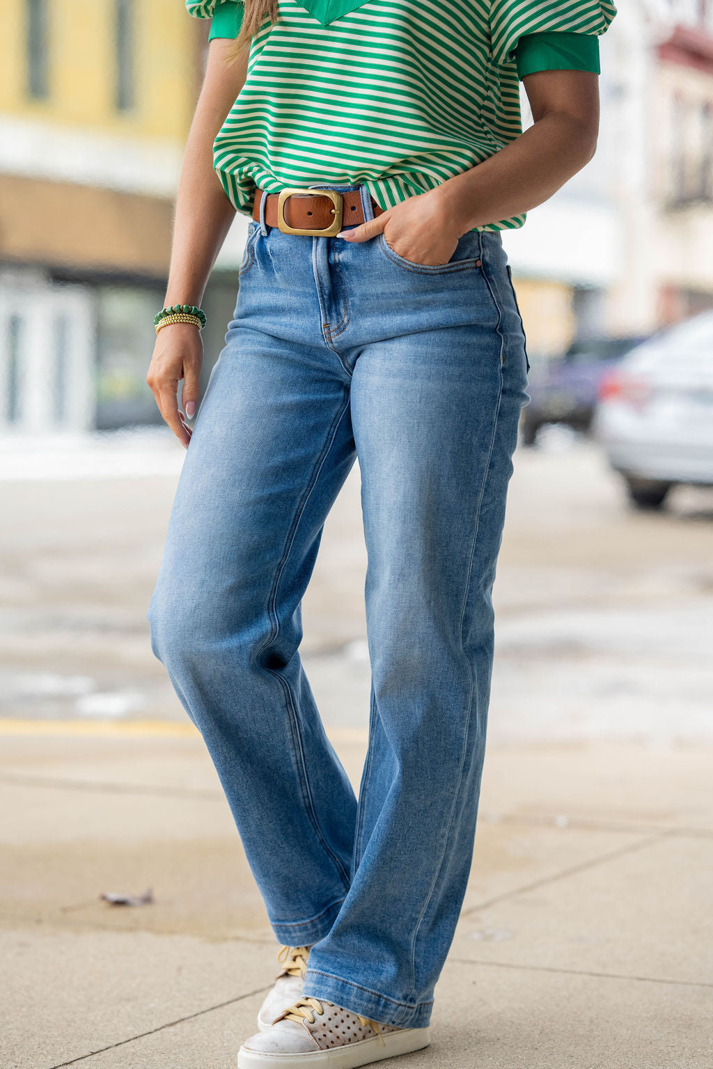 Meet your new everyday denim—soft, easy, and effortlessly flattering. These mid-wash jeans feature a relaxed straight leg that gives you that laid-back, lived-in feel without sacrificing shape.