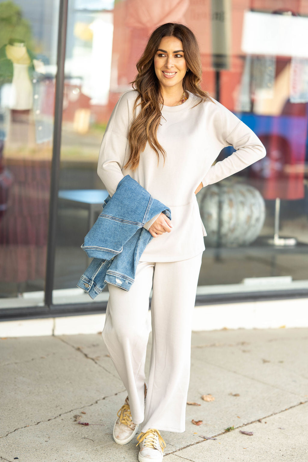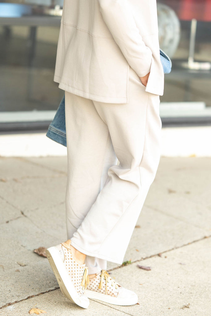 A soft essential designed for slow mornings and relaxed days. These wide-leg lounge pants pair perfectly with your favorite pullover or tee, giving an effortlessly elevated feel to cozy comfort.