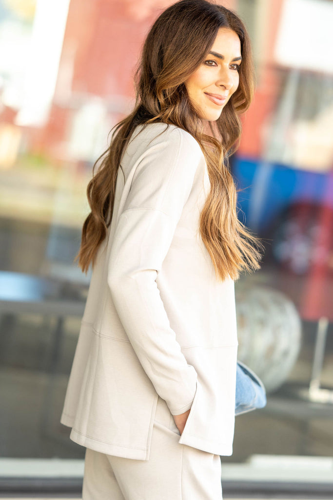 The kind of cozy that feels elevated. This soft pullover brings lounge-level comfort with a clean, minimalist look — perfect for layering or pairing with matching bottoms for a monochrome moment.