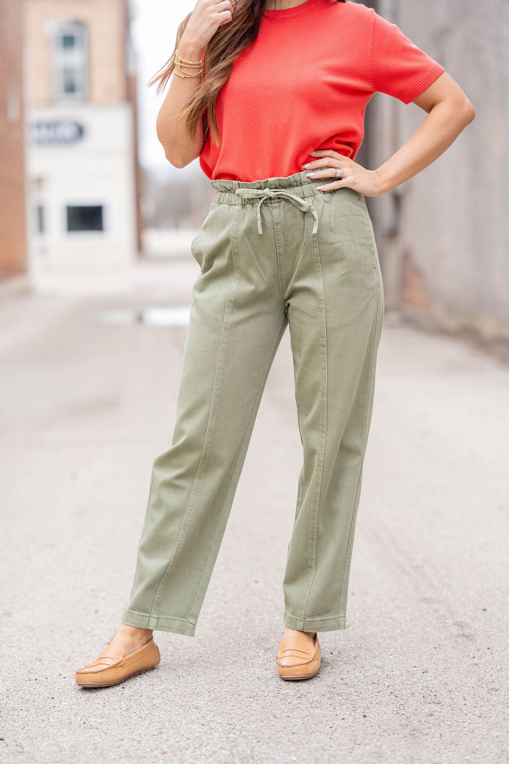 With a soft drawstring waist and relaxed leg, these jeans blend comfort with vintage ease. Their willow sage hue feels grounded in nature, making them a refreshing staple for both laid-back weekends and polished casual days.