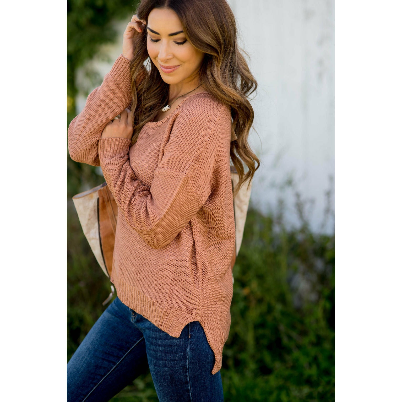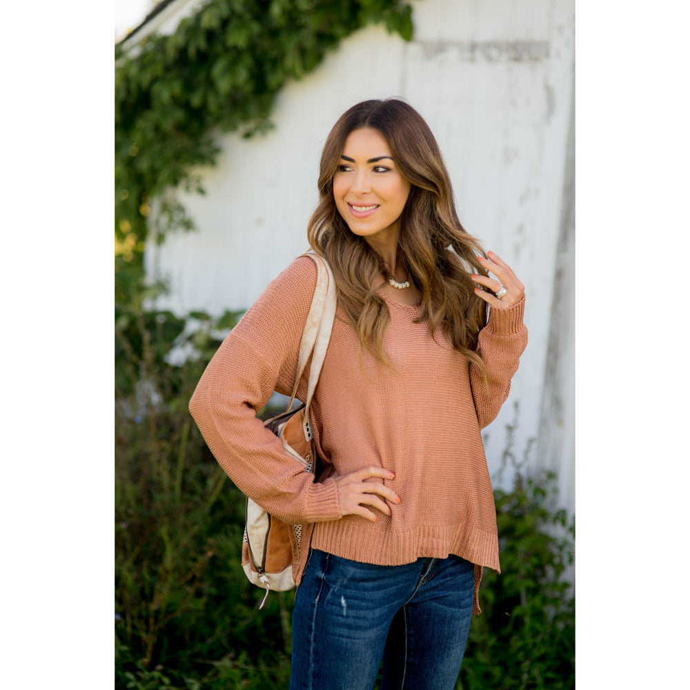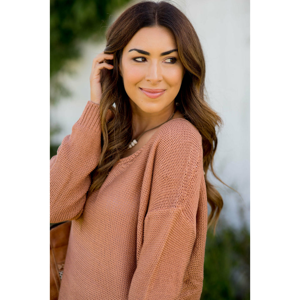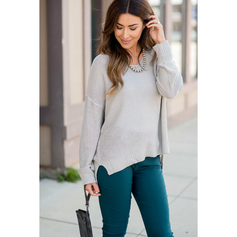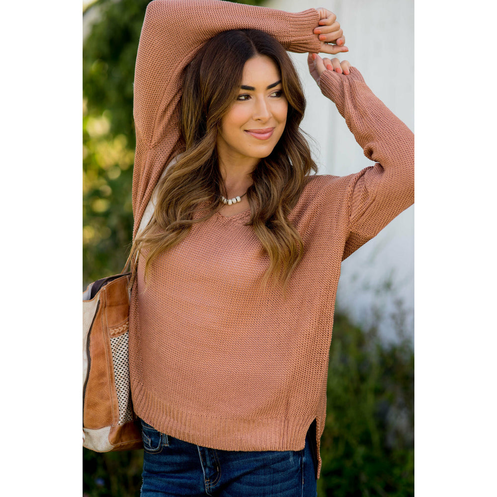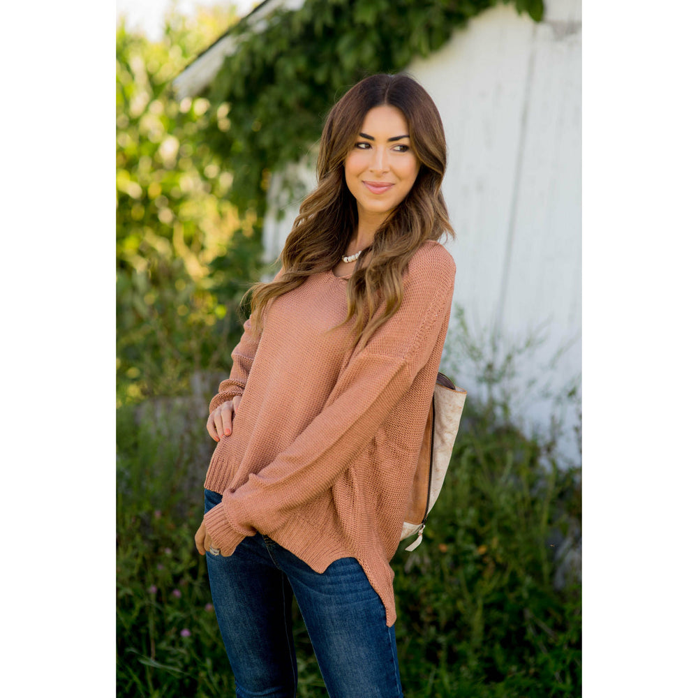 Loose Fitting Knit V-Neck Sweater