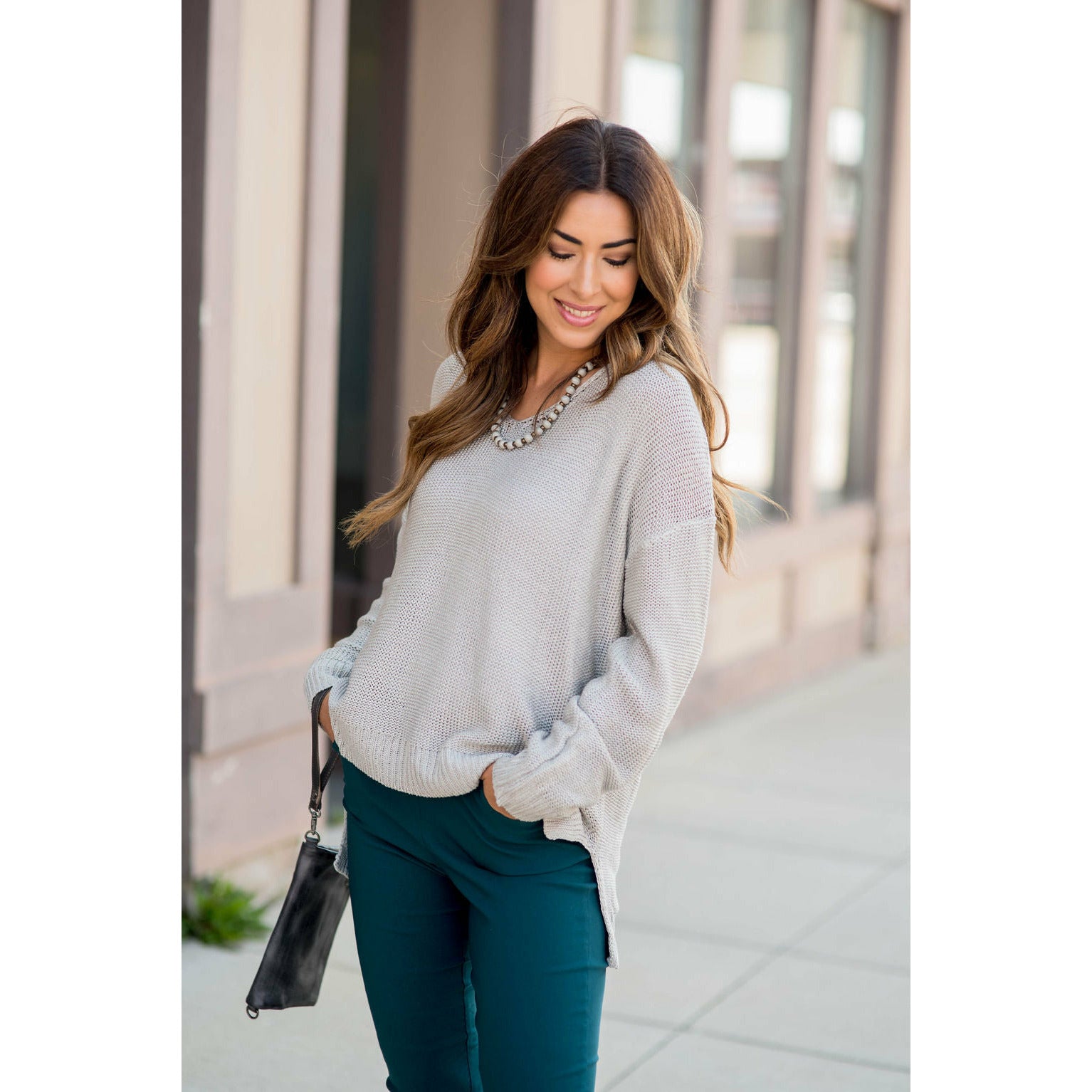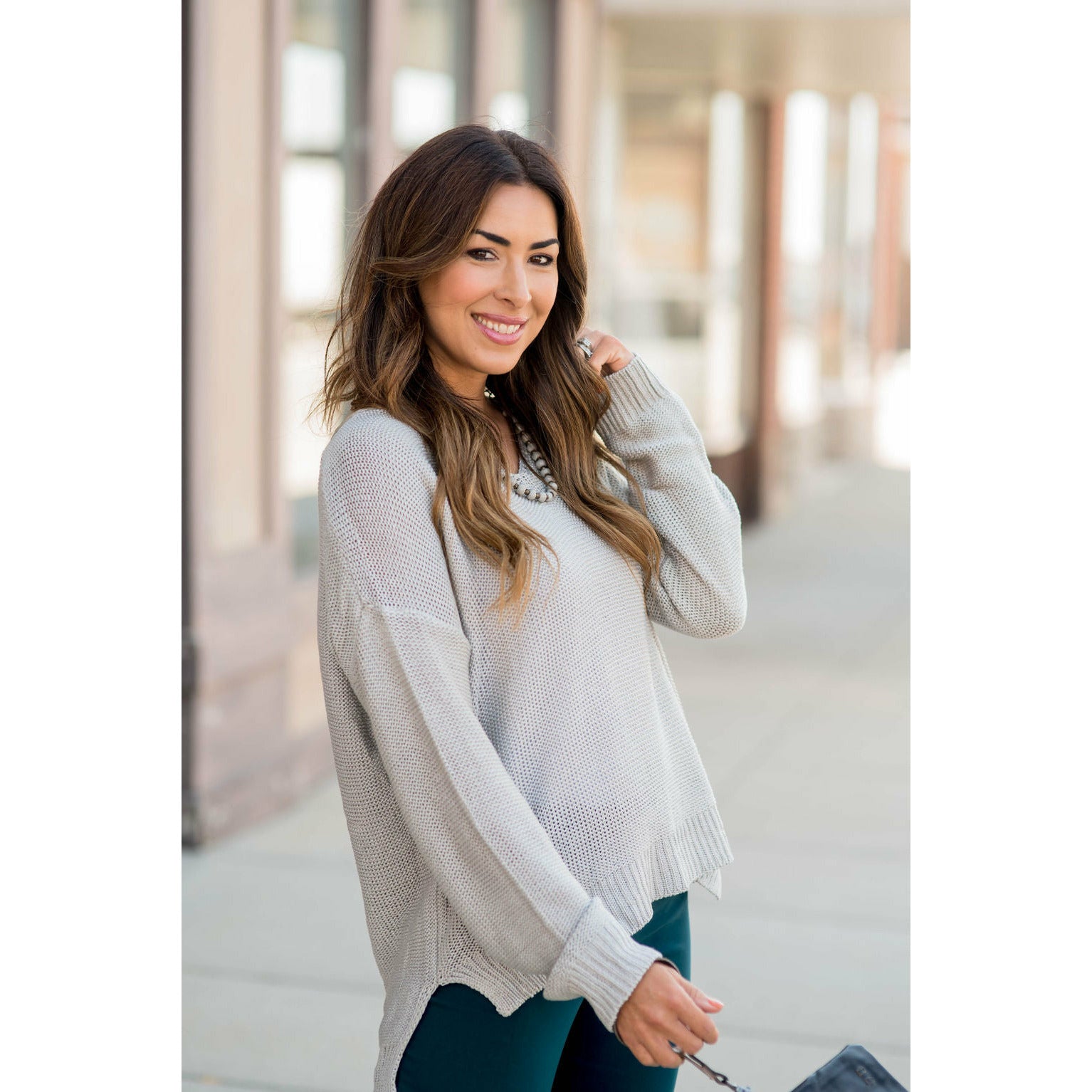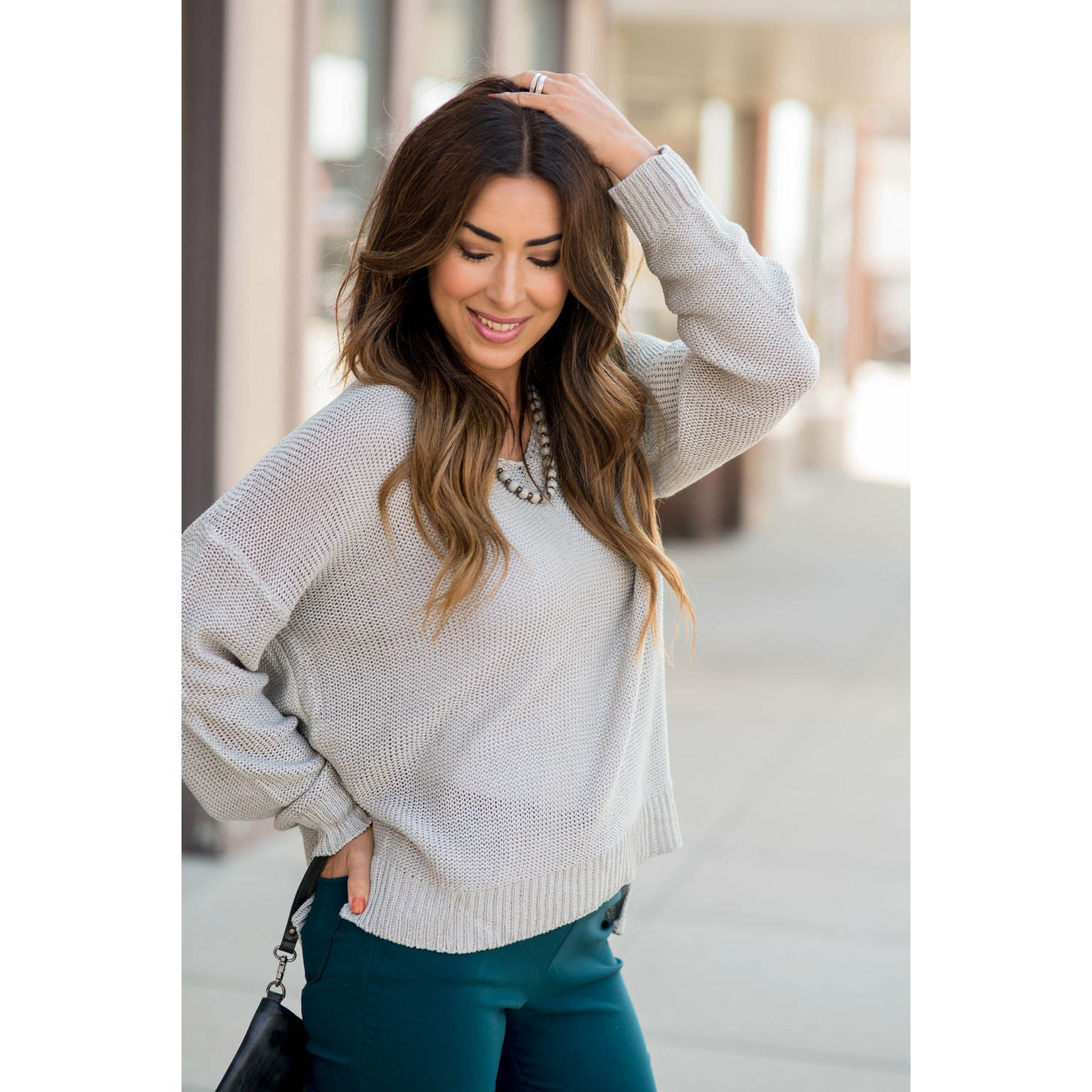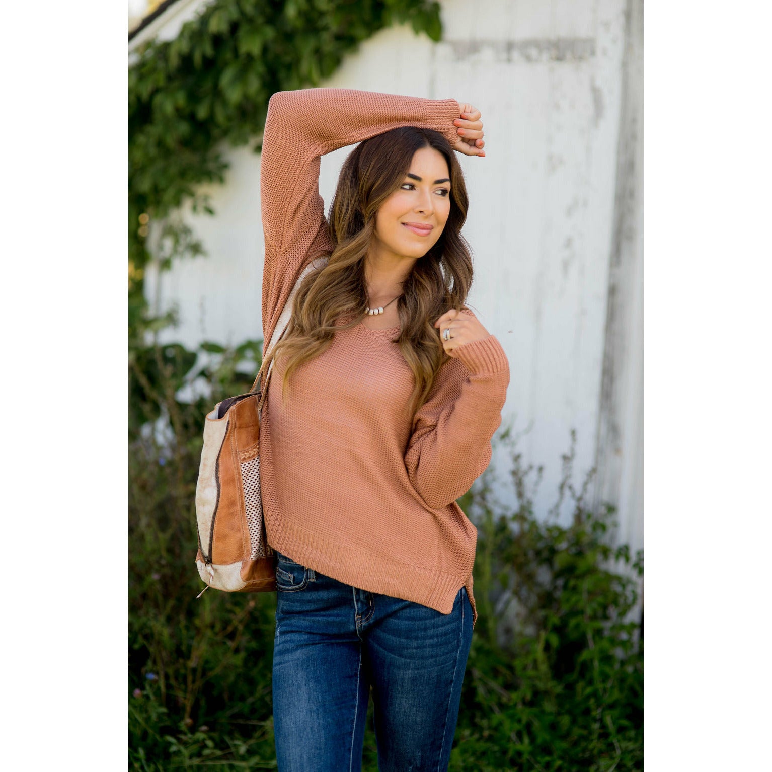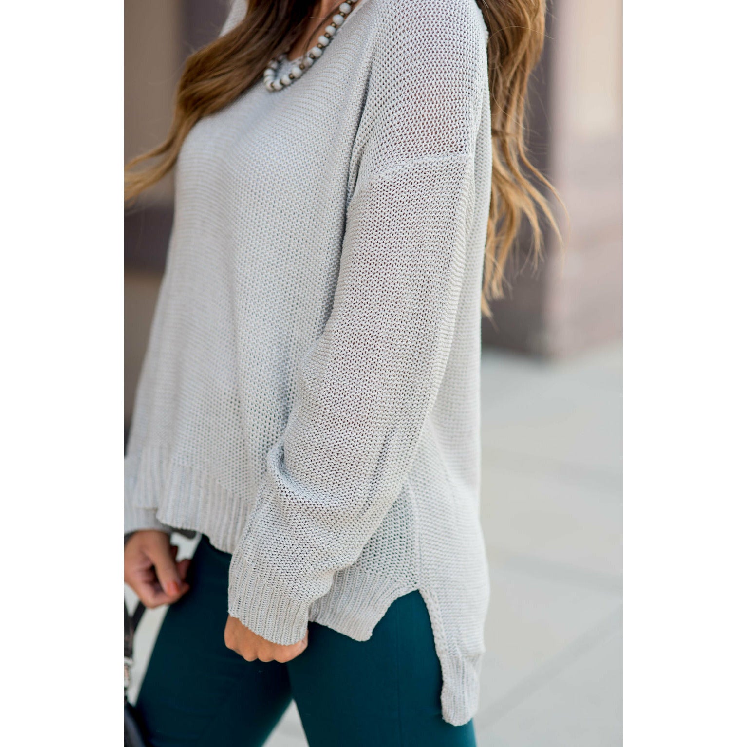 Loose Fitting Knit V-Neck Sweater