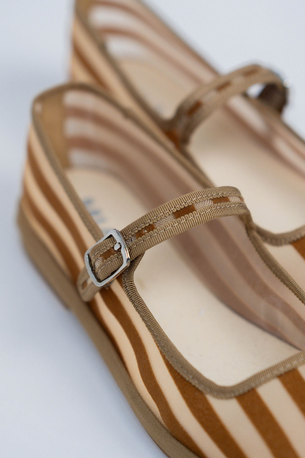 Chic and ease, meet MOROCCO. Crafted with mesh and an on trend suede stripe design, this classic Mary-Jane flat is finished off with an easy silver buckle closure. MOROCCO is a must for your next trip.