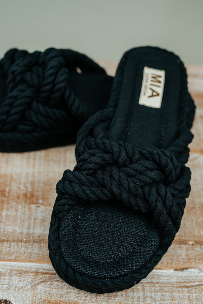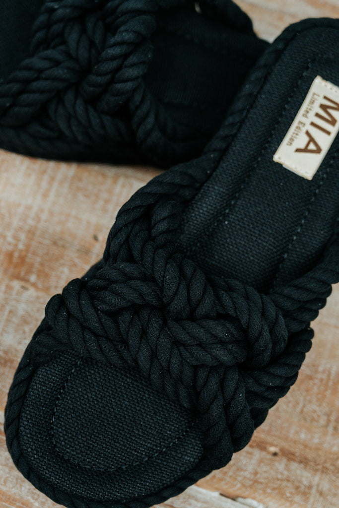 Slip into a warm state of mind with the MIKO. Designed on a cushioned insole, this strappy sandal features thick braided upper straps and a rope wrapped 1-inch platform. Cute and comfortable, she's worth the tanlines!