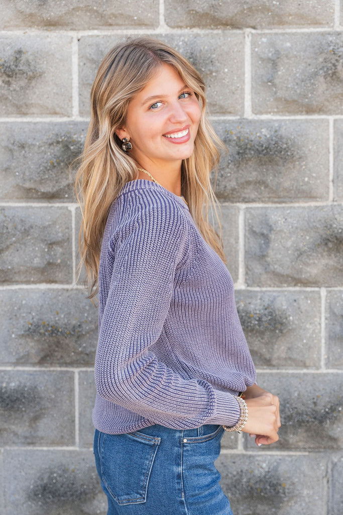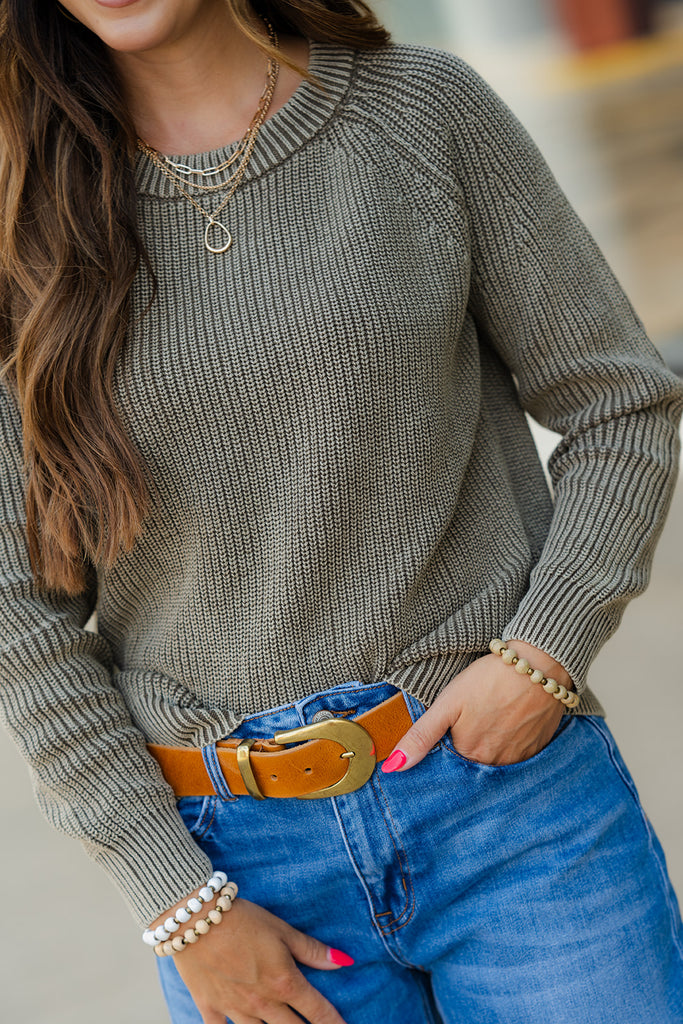 Sweater weather is here and we are ready! This knit sweater has ribbed trim and a thick stitching around the shoulders with a mineral-washed look that gives it an edgier vibe! Pair with a skirt, your favorite denim, or our Betsey’s Jeggings for a more elevated feel or with leggings or joggers for a more casual look. Chilly? Add a vest or jacket with ease! Don’t forget to accessorize this to match your style.