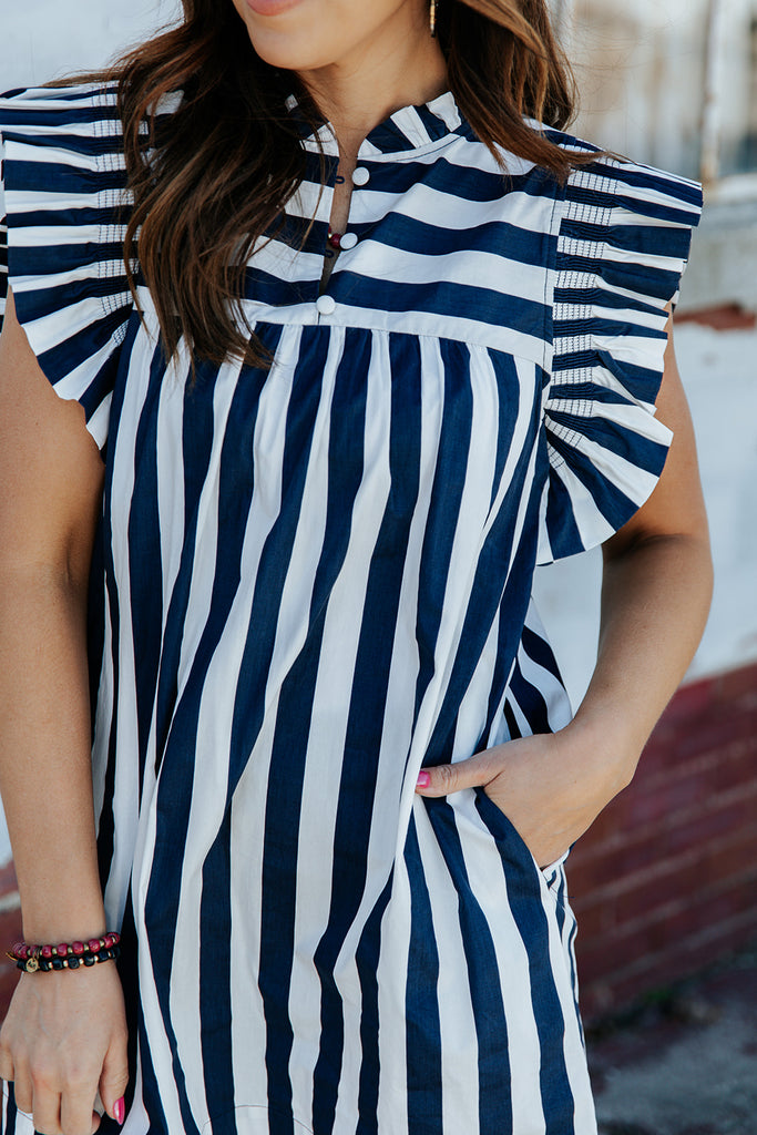 So many ways to style for anything the day throws at you! Dress it up with a statement necklace, pair with a denim jacket or sneakers, or with a pair of sandals and your favorite earrings! This lightweight striped dress is sure to become a staple in your wardrobe!