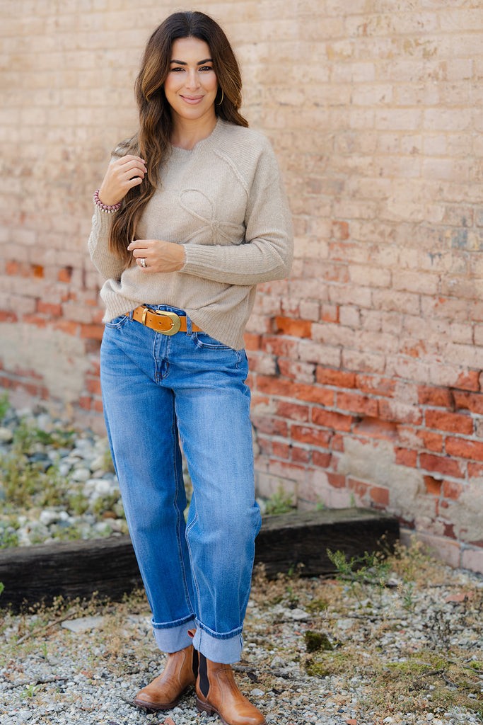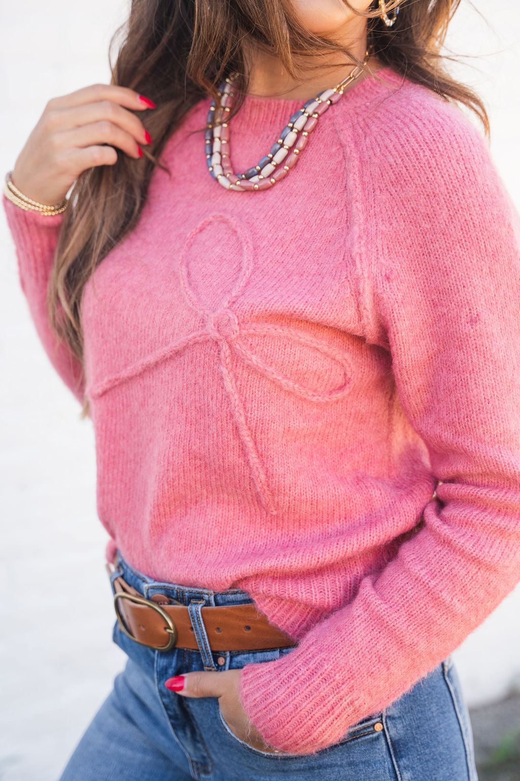 Bows are super trendy right now and we see why! This super soft and simple sweater features a subtle stitched bow that truly sets it apart from the rest! Pair with a skirt to transition you from the warmer months or with your favorite denim, joggers, or even a bold-colored pair of our Betsey's Jeggings! The simplicity of this sweater allows you to dress it up or down with ease! Chilly? This looks great with an added vest or jacket too!