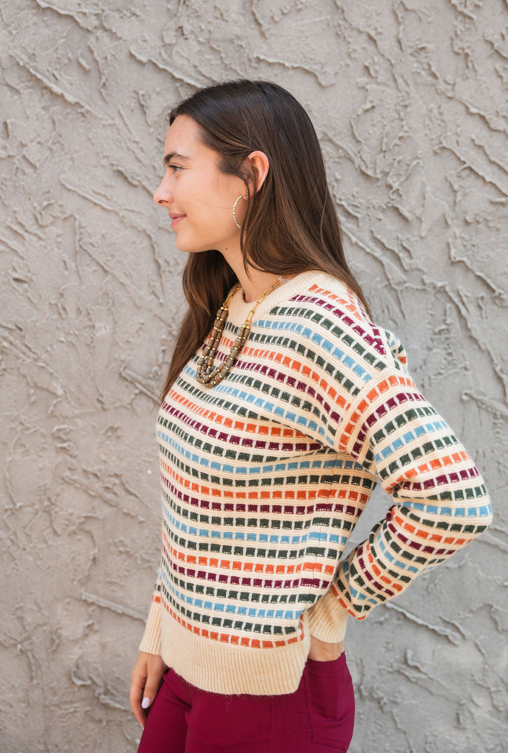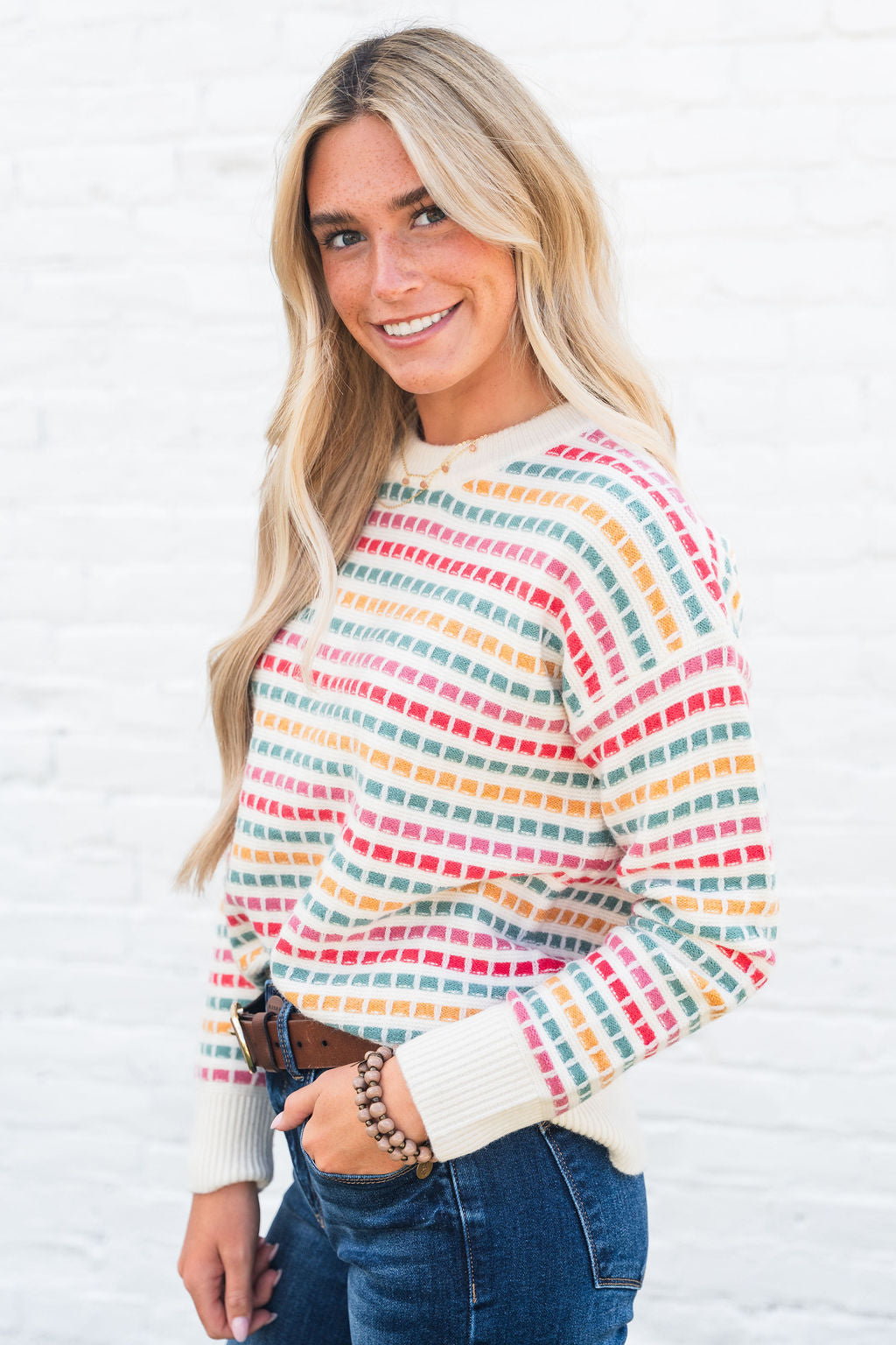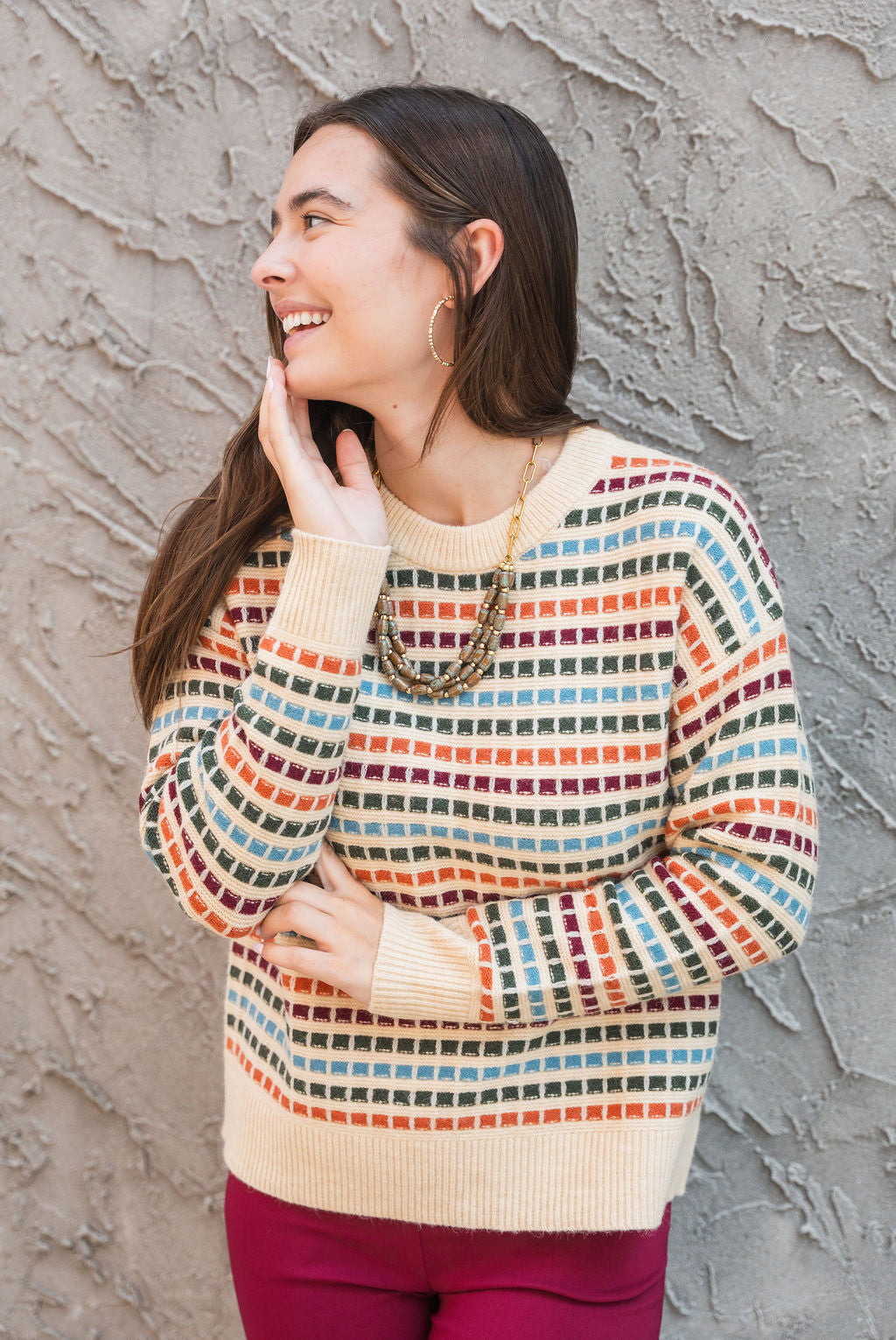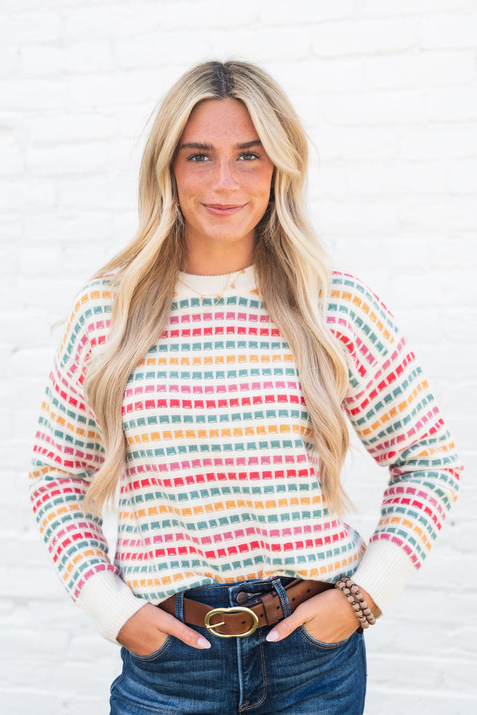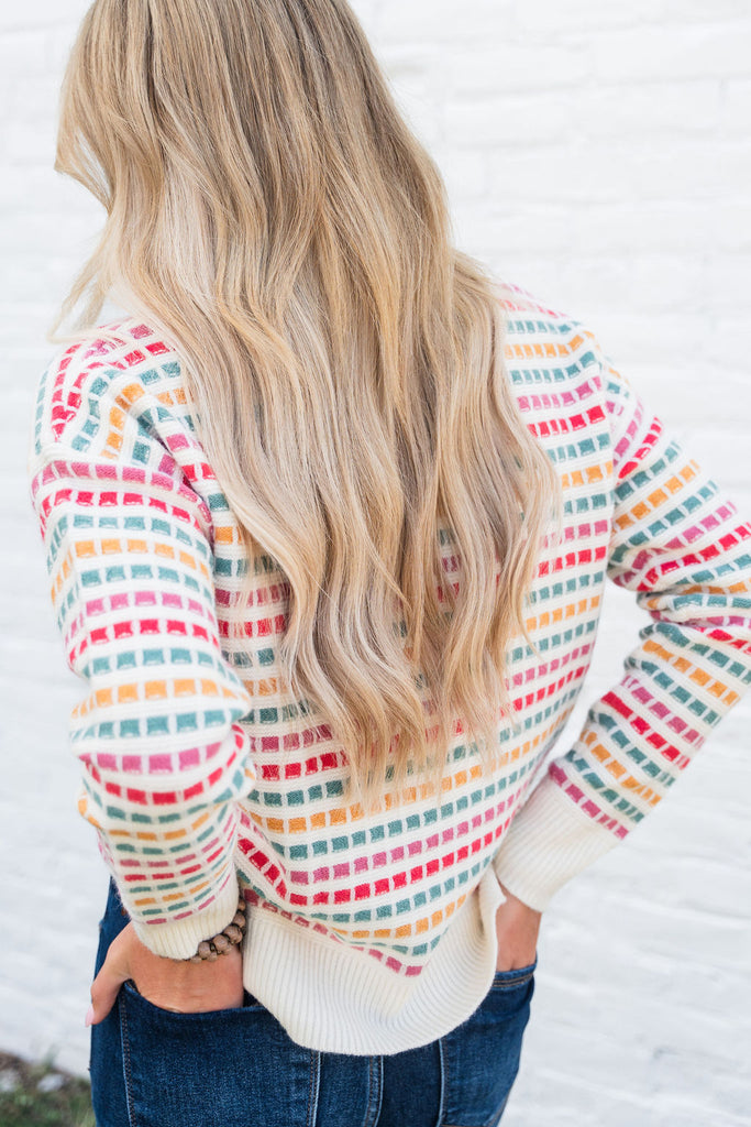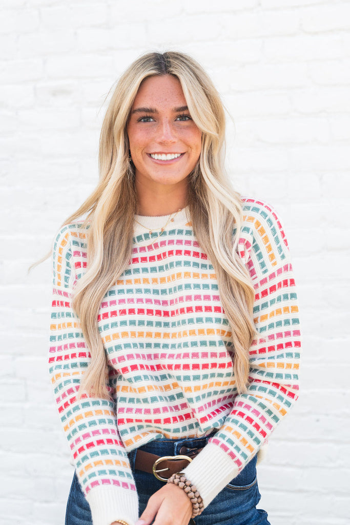 Is it even possible to have too many sweaters?! We don’t think so either! This sweater has the perfect blocked stripes accents and bold colors that come together to create this staple piece that you NEED in your wardrobe! Dress this up or down with ease, add a pop of color with our Betsey’s Jeggings or keep it simple with your favorite denim, however you choose to style it, we know this will be one of your favorites!