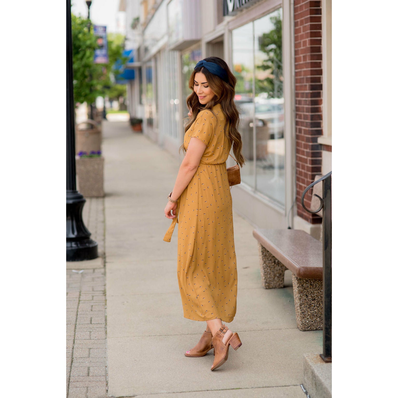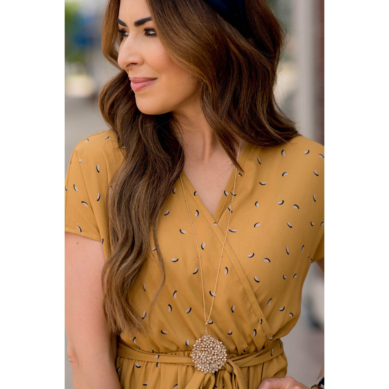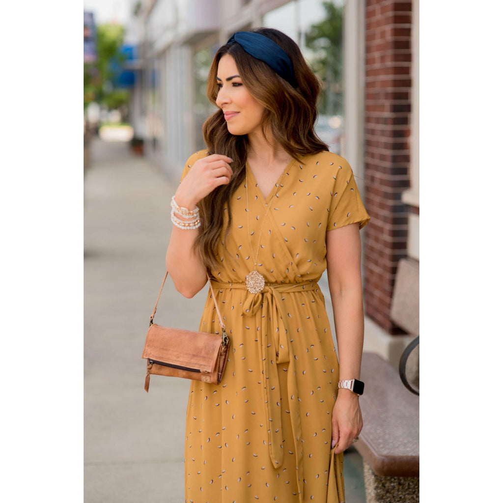 Maxi dresses are super comfy and flattering and this Mustard Printed Wrap Maxi Dress is no exception! This print is perfect for fall and the wrap style with the tie waist is super slimming and perfect for any body type. We suggest layering this with a denim jacket and one of our clay bead necklaces for a complete Betsey’s look.