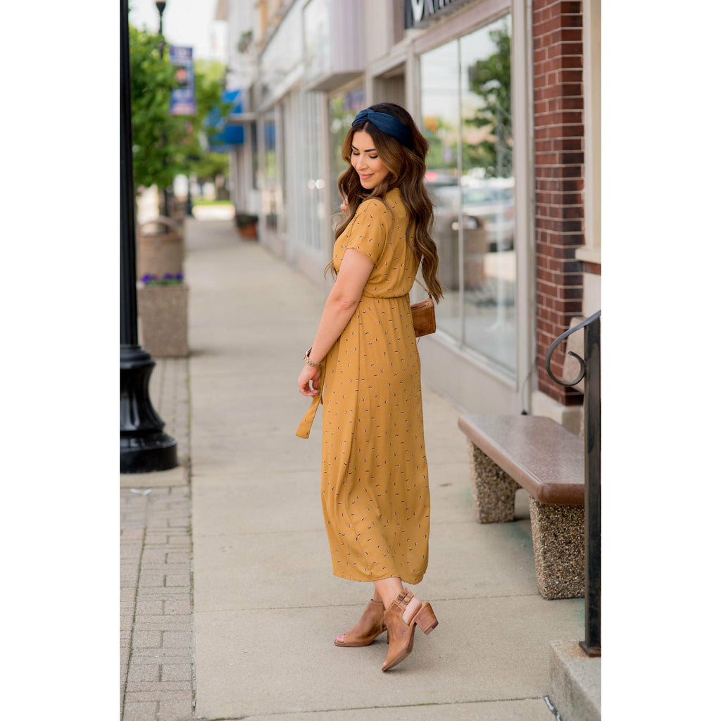 Mustard Printed Wrap Maxi Dress