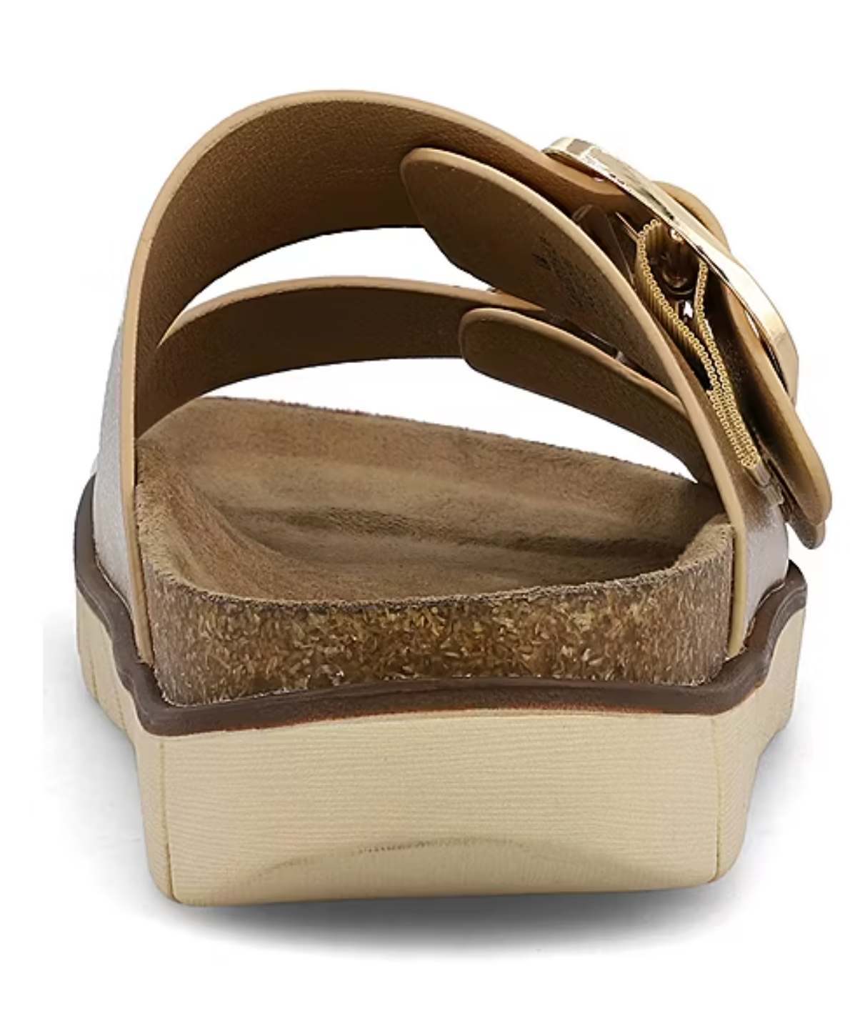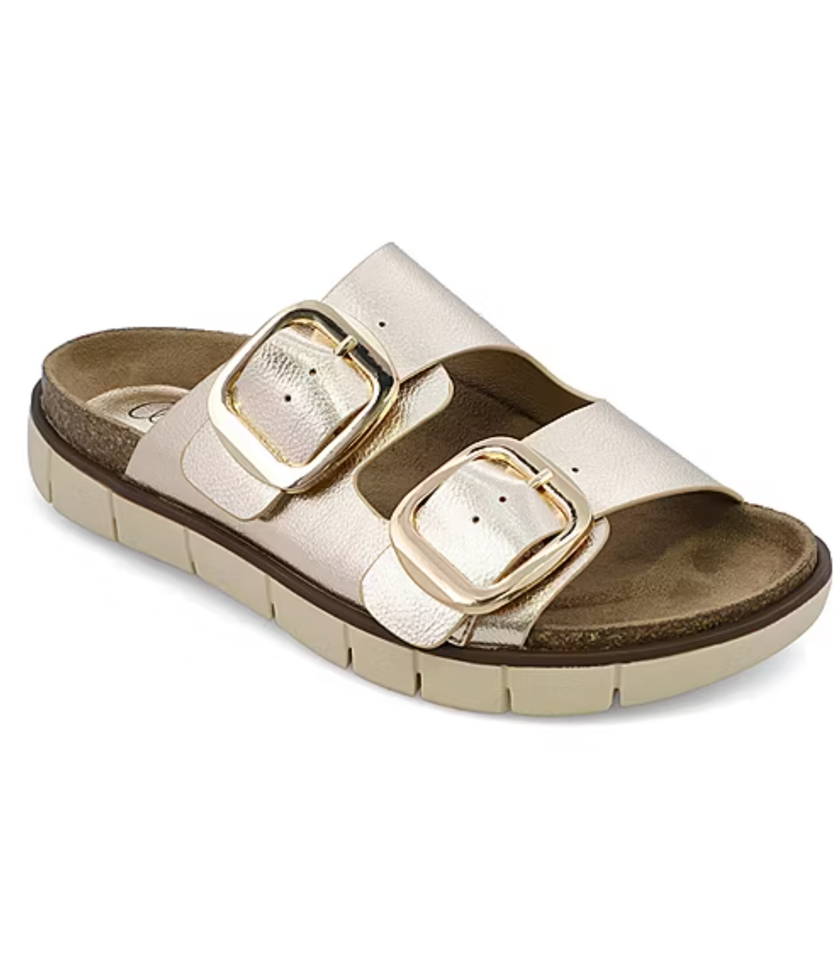 A take on the trendy double buckle but with ultimate comfort. This everyday sandal features vegan suede and a sneaker bottom sole. Now available in wide width, ensuring the perfect match for every foot, season after season.