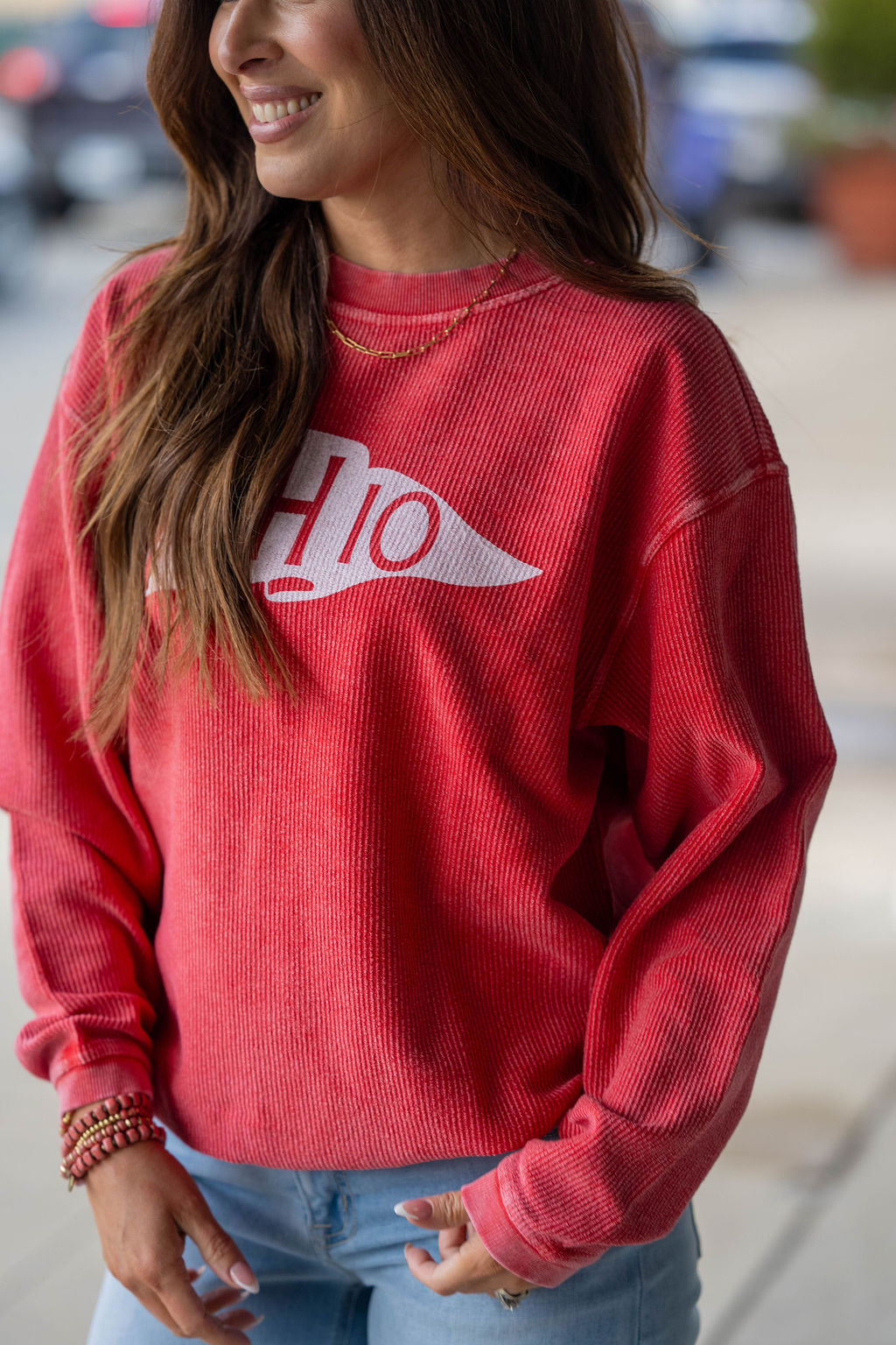 Show your Ohio pride in the cutest way with this soft, garment-dyed sweatshirt featuring a vintage-inspired pennant graphic.