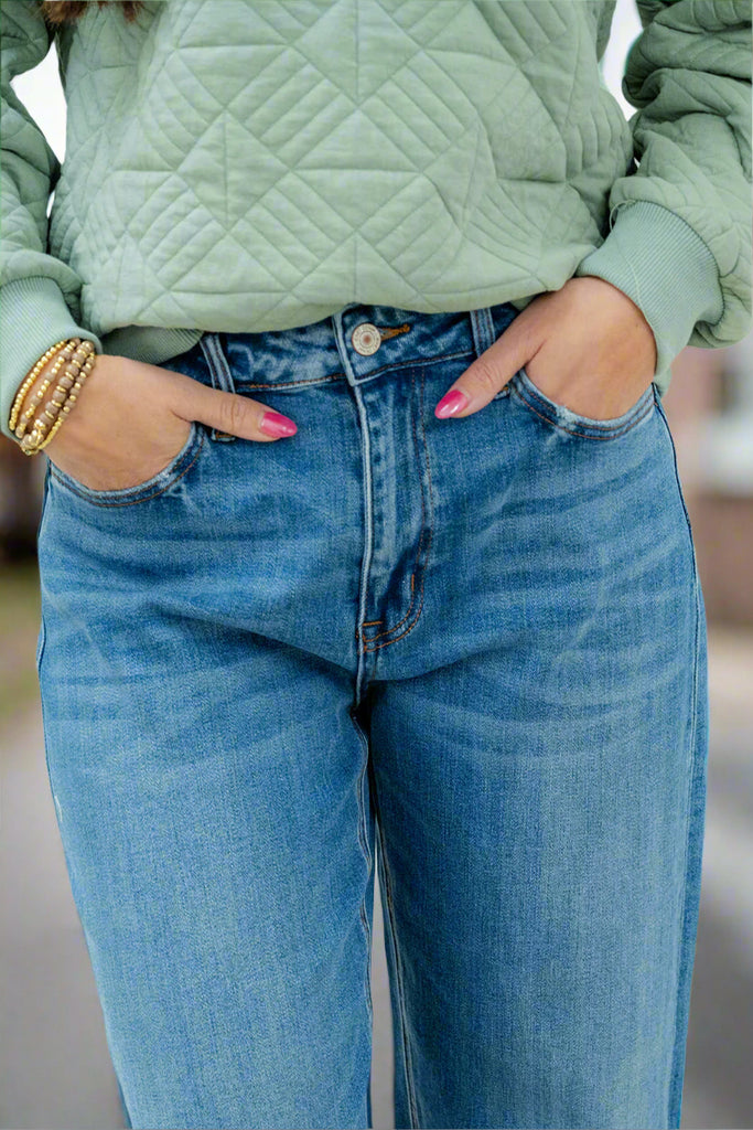 These high-rise barrel style jeans are sure to be your new go-to's! Dress them up or down with ease for everyday wear!