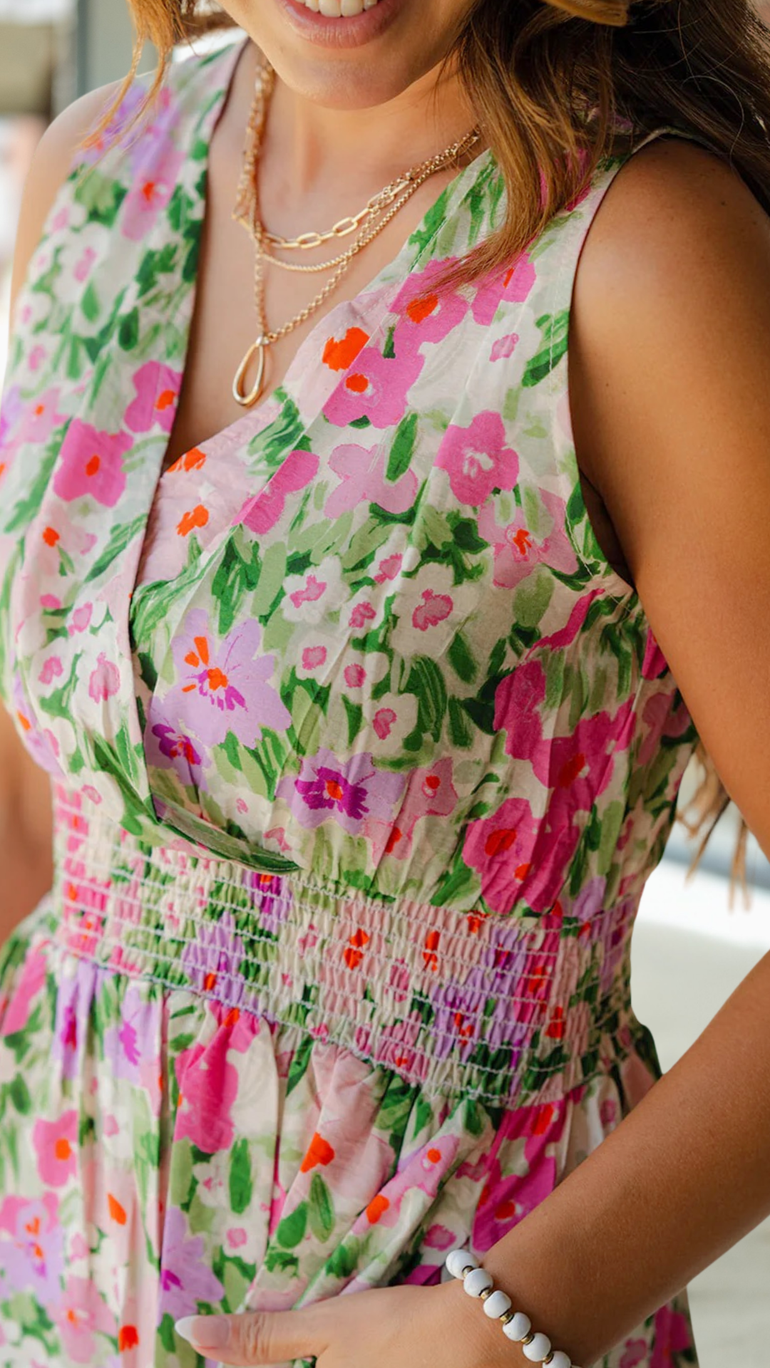 Everything about this midi is absolutely stunning! The wrap top, cinched waist, and flowy bottom that gives a super slimming effect, and the beautiful colors and print set this apart from the rest! Wear alone with a fun pair of earrings or a statement necklace or pair with a cardigan or denim jacket for those breezy days!
