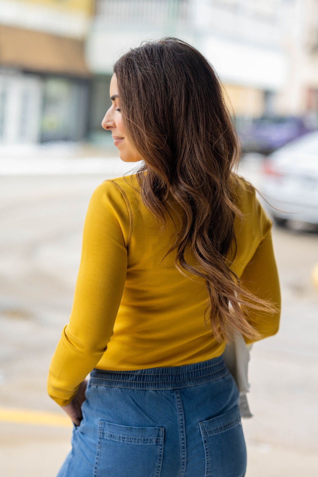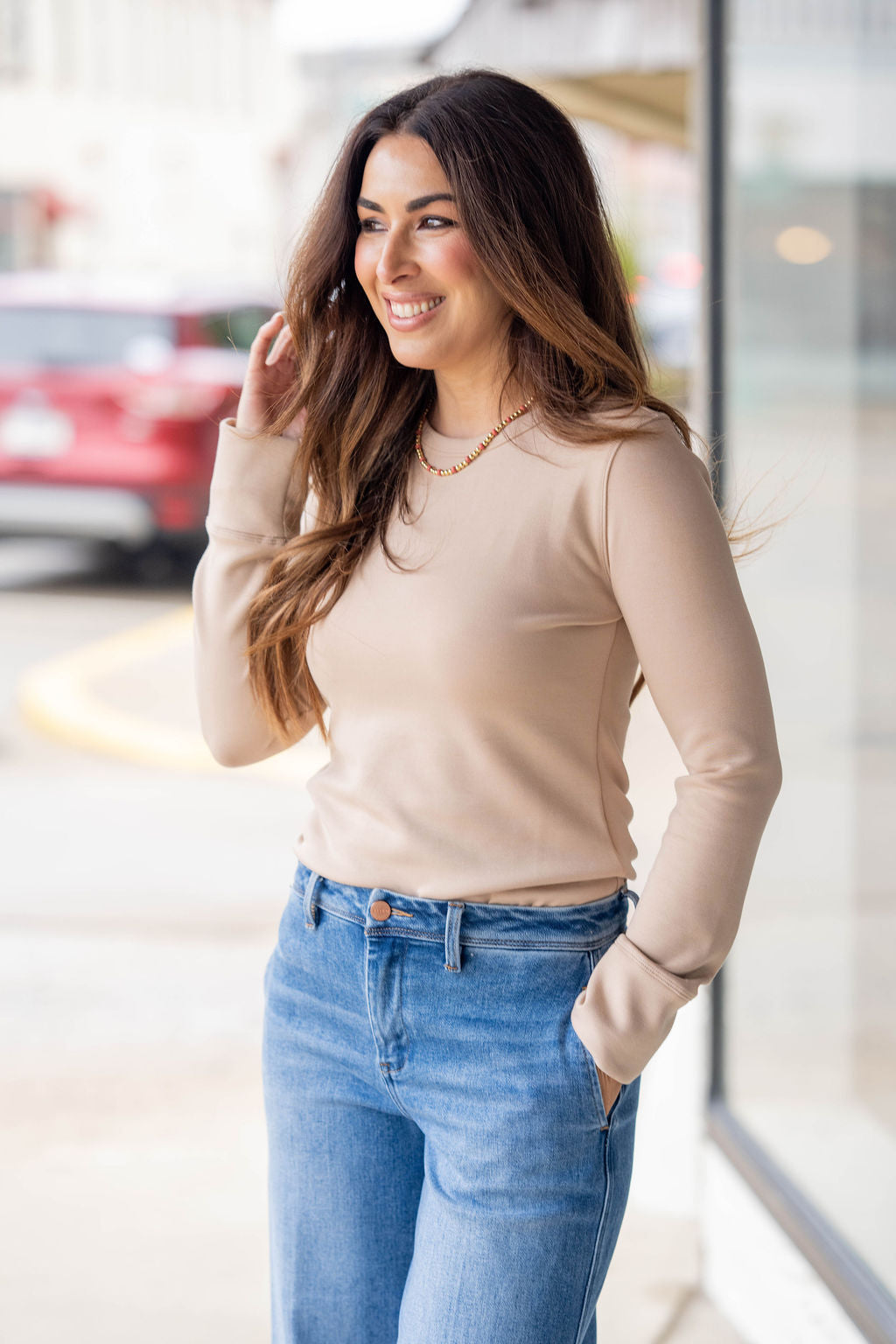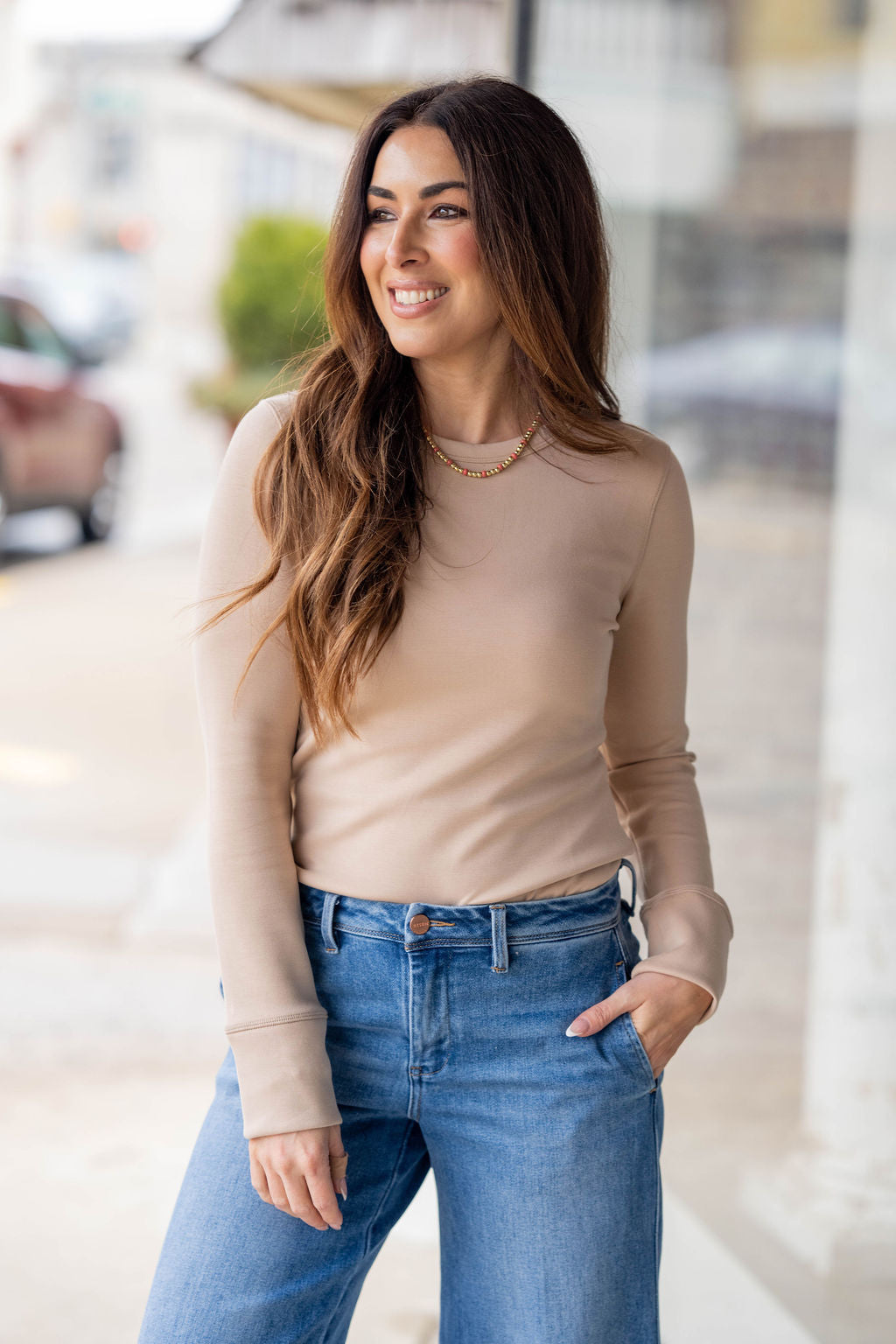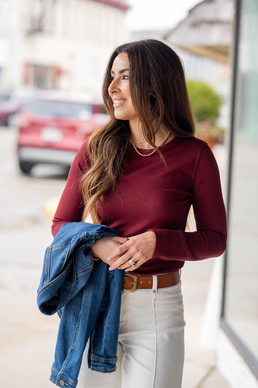 Clean, classic, and unbelievably flattering—this sleek long-sleeve top is the elevated basic every closet needs. The smooth, stretchy fabric offers a comfortable, body-skimming fit that layers beautifully but also stands strong on its own.