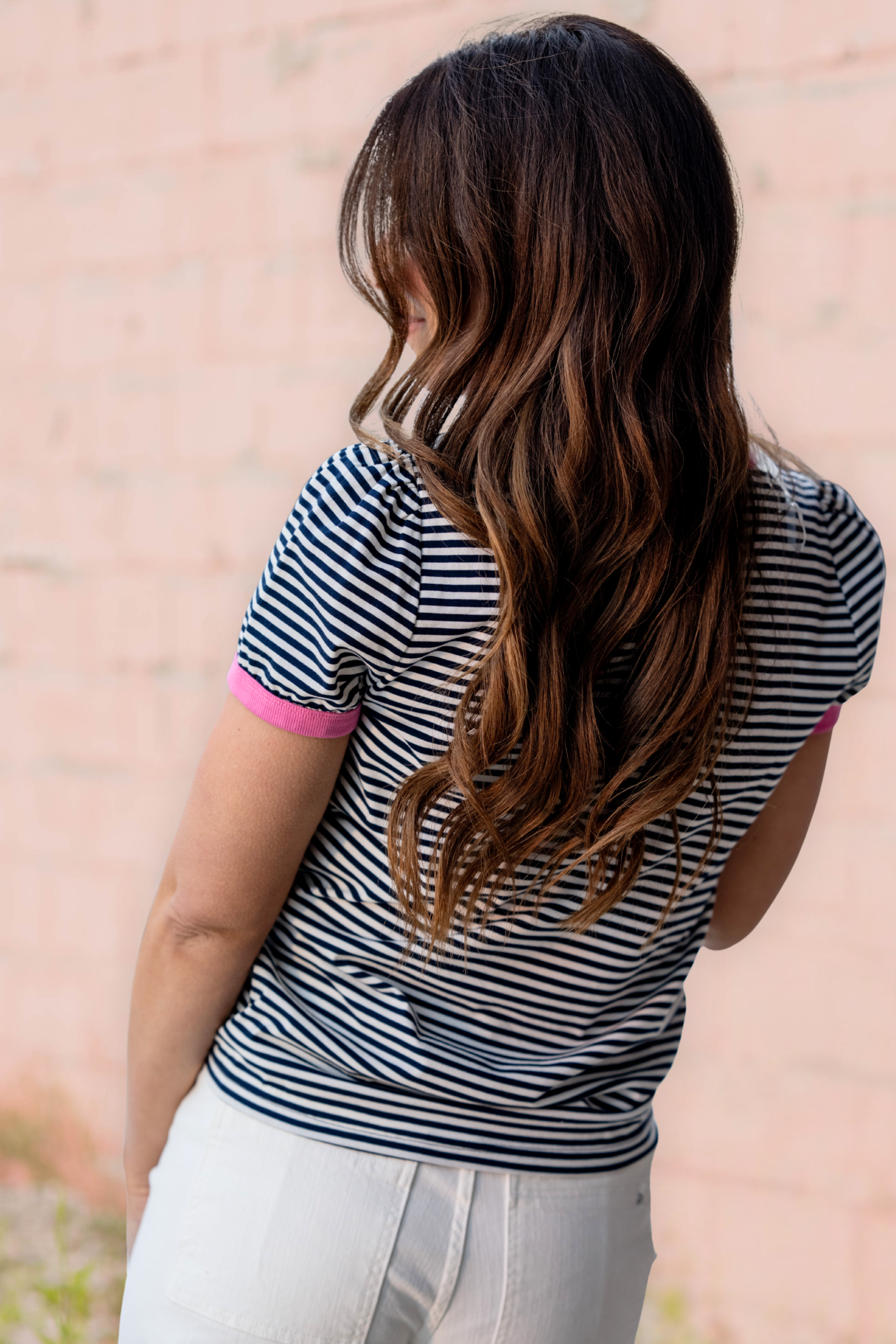 A timeless classic with a playful twist. This striped tee features a contrast neckline and sleeve trim that adds the perfect pop of personality to an everyday staple.