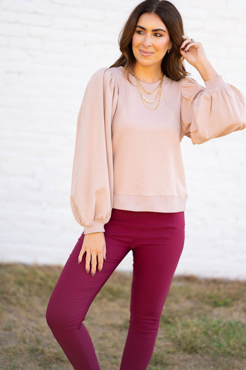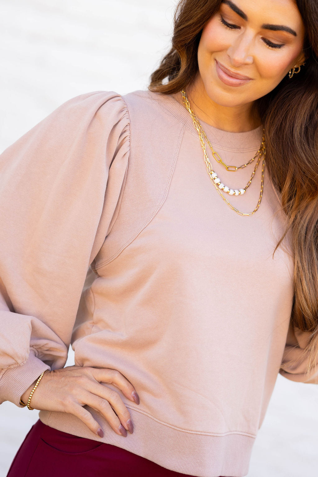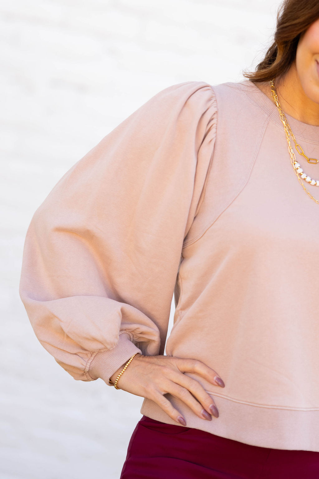 A feminine twist on your classic — this puff-sleeve sweatshirt combines soft comfort with subtle sophistication. Perfect for days you want to look polished without sacrificing coziness.