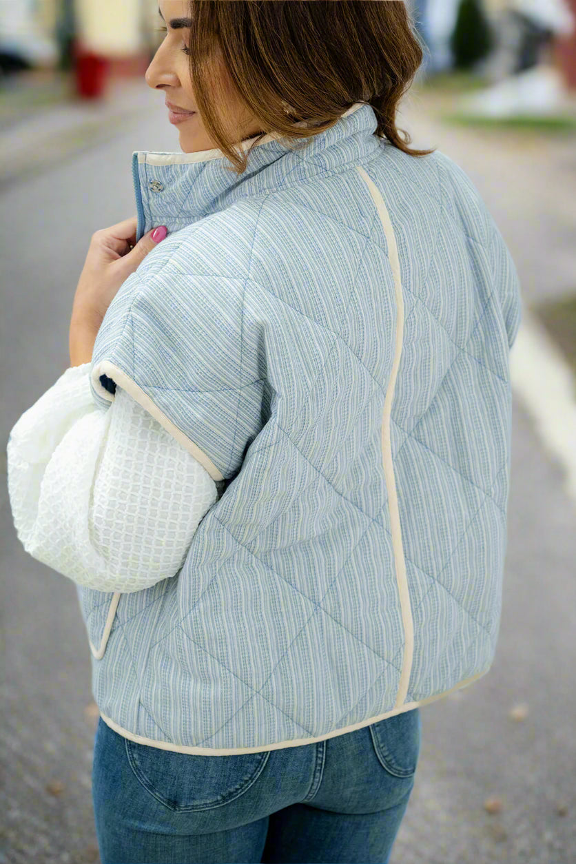 Quilted Muted Stripes Oversized Vest