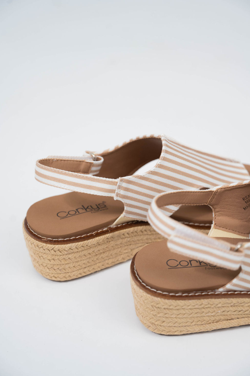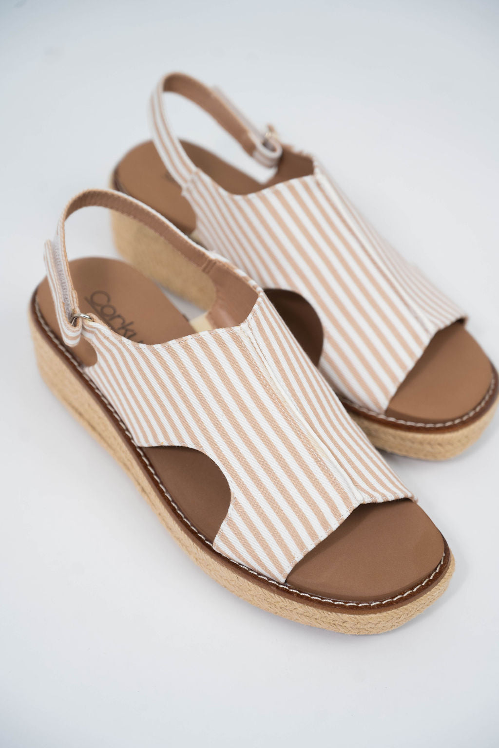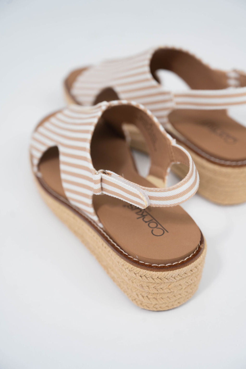 Ready Or Not Tan White Stripe Corky's Wedges