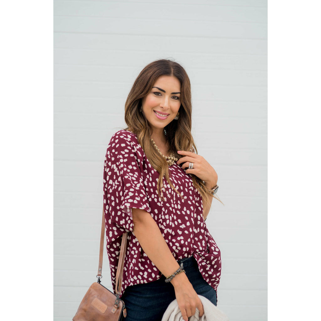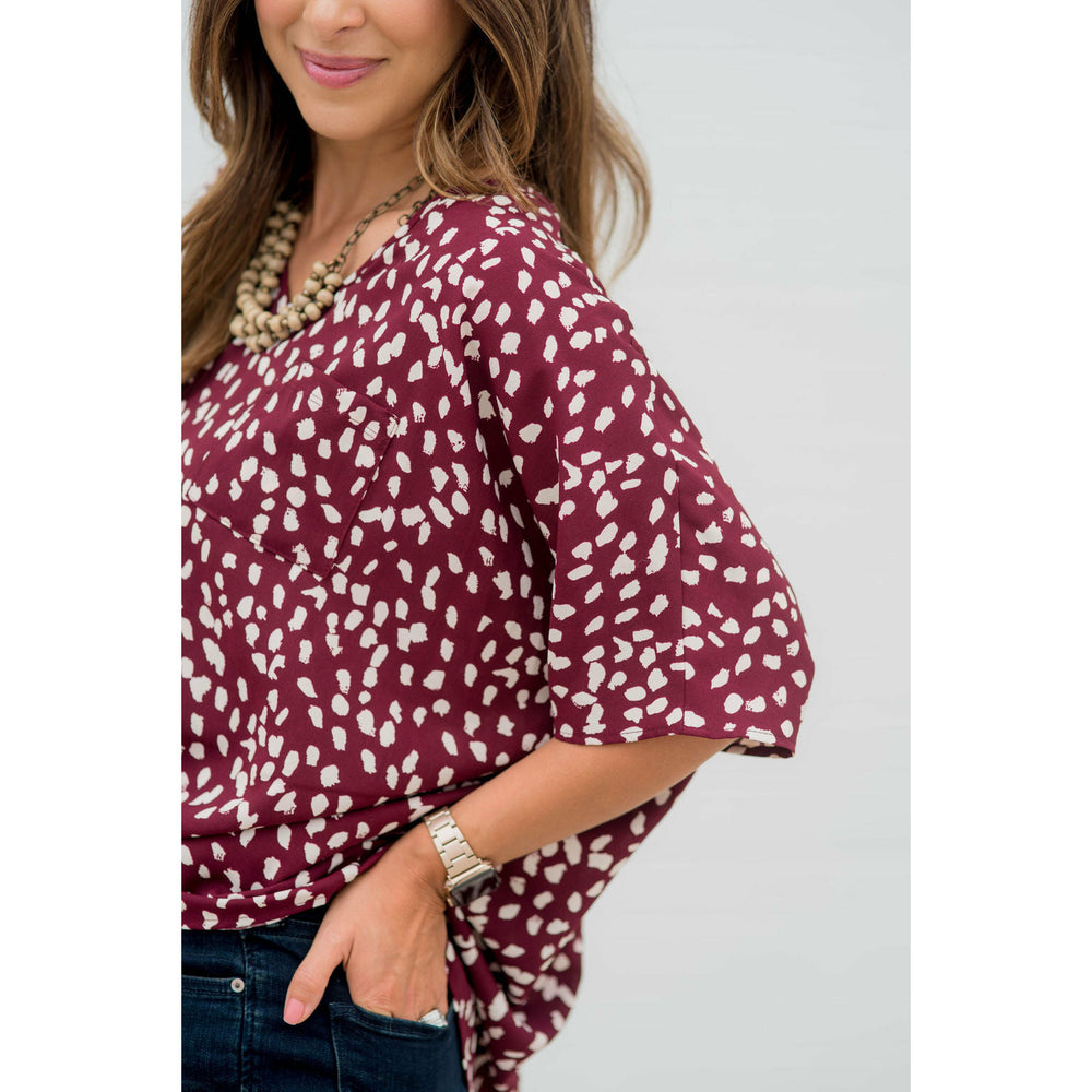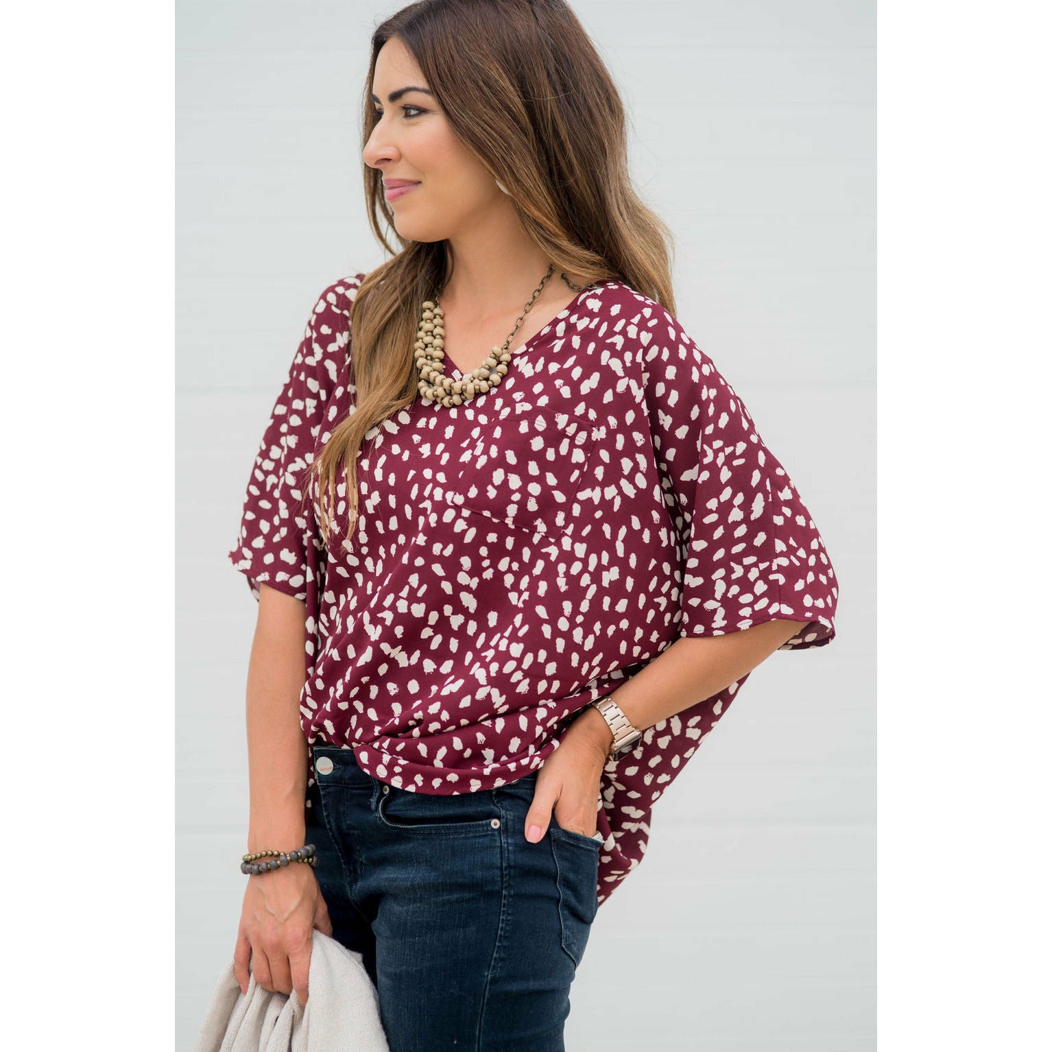 Who doesn’t love a good relaxed fit and especially with this bold and beautiful print?! This blouse fits for an oversized look and can be styled in so many ways. Dress it up with a statement necklace or wear it alone for a more casual look with the featured pocket.