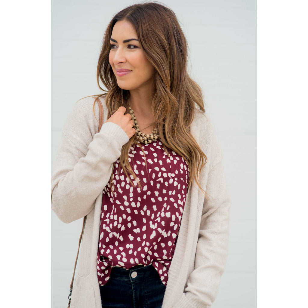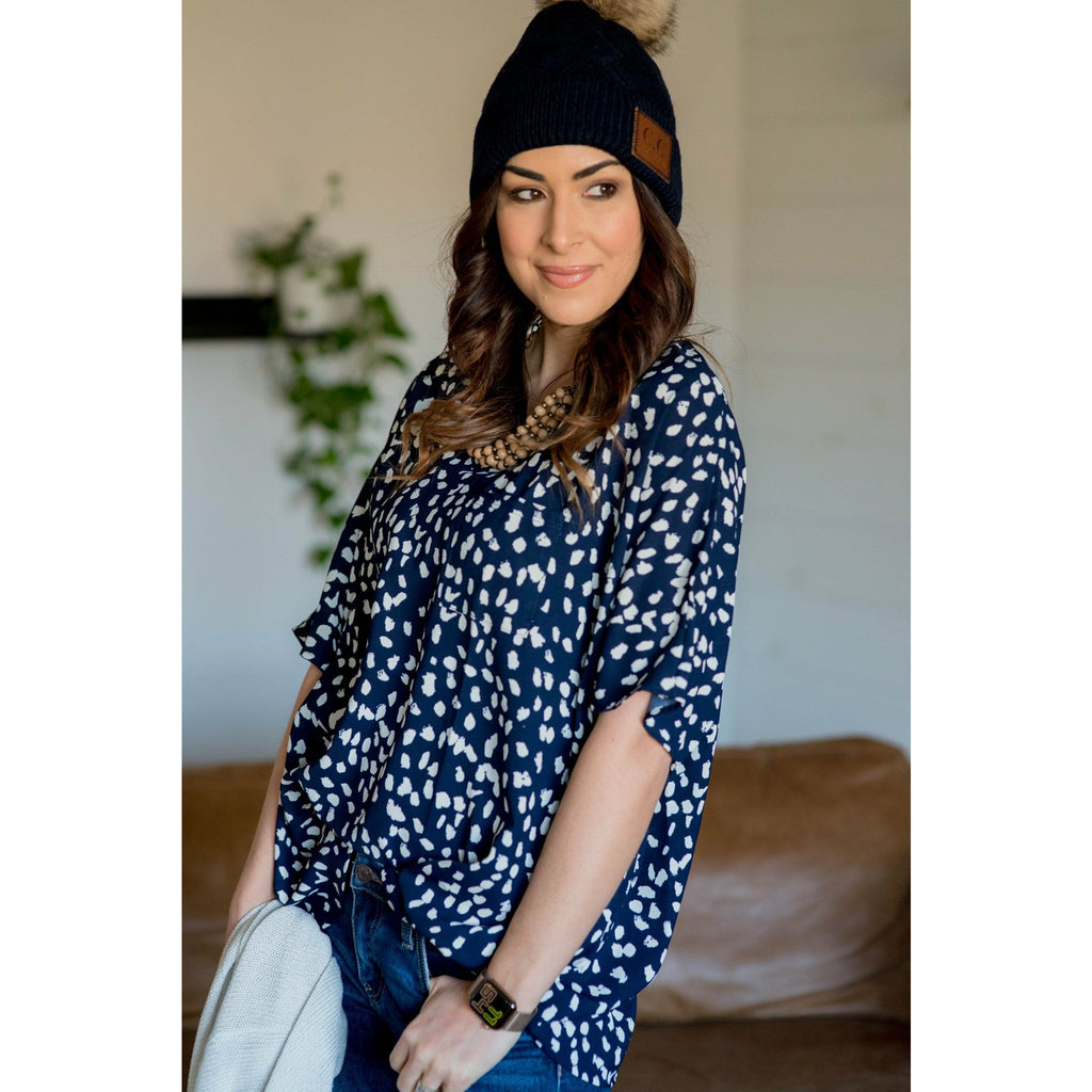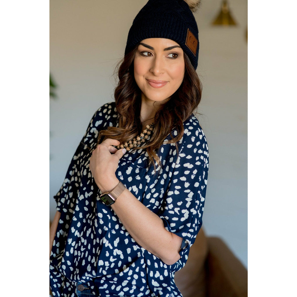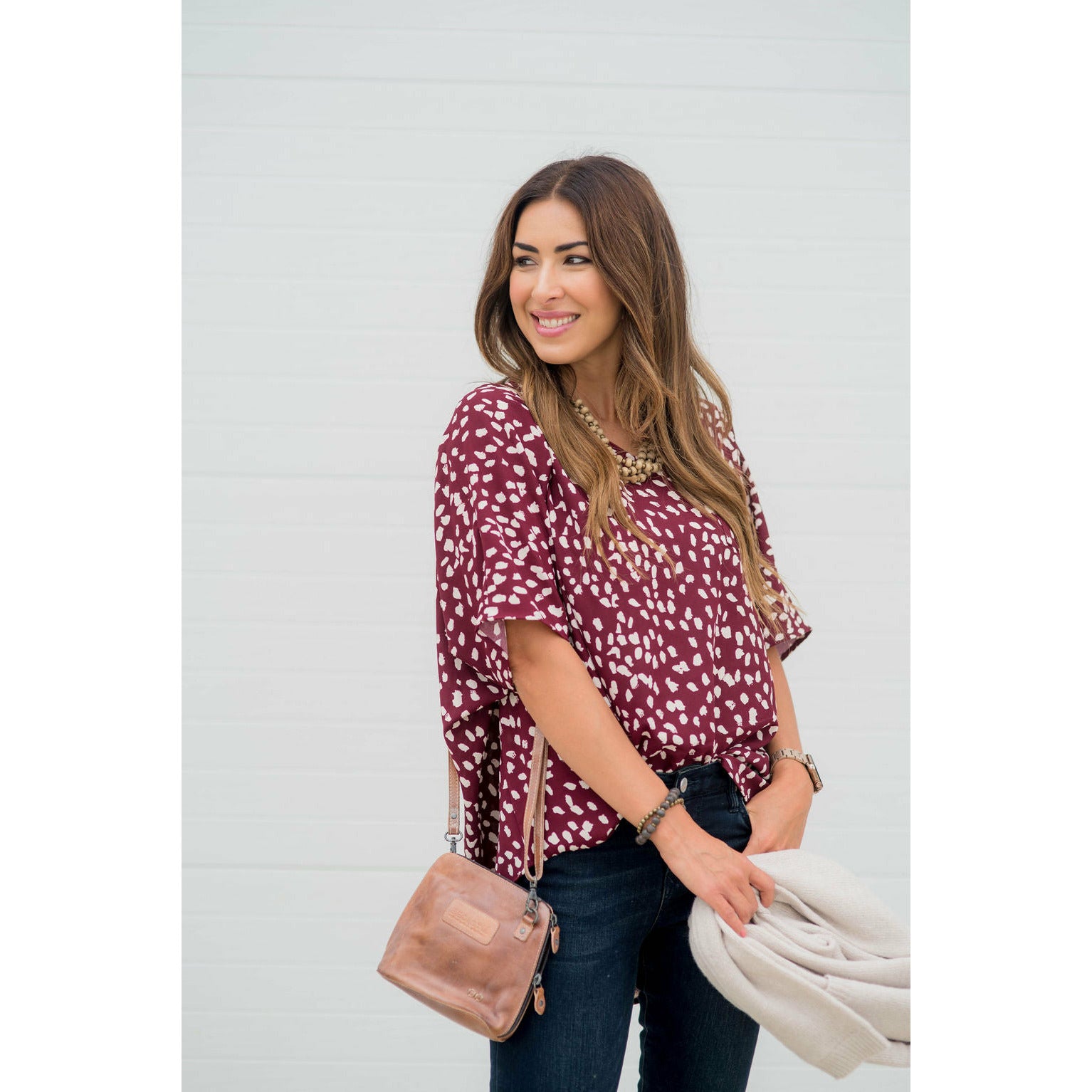 Who doesn’t love a good relaxed fit and especially with this bold and beautiful print?! This blouse fits for an oversized look and can be styled in so many ways. Dress it up with a statement necklace or wear it alone for a more casual look with the featured pocket.