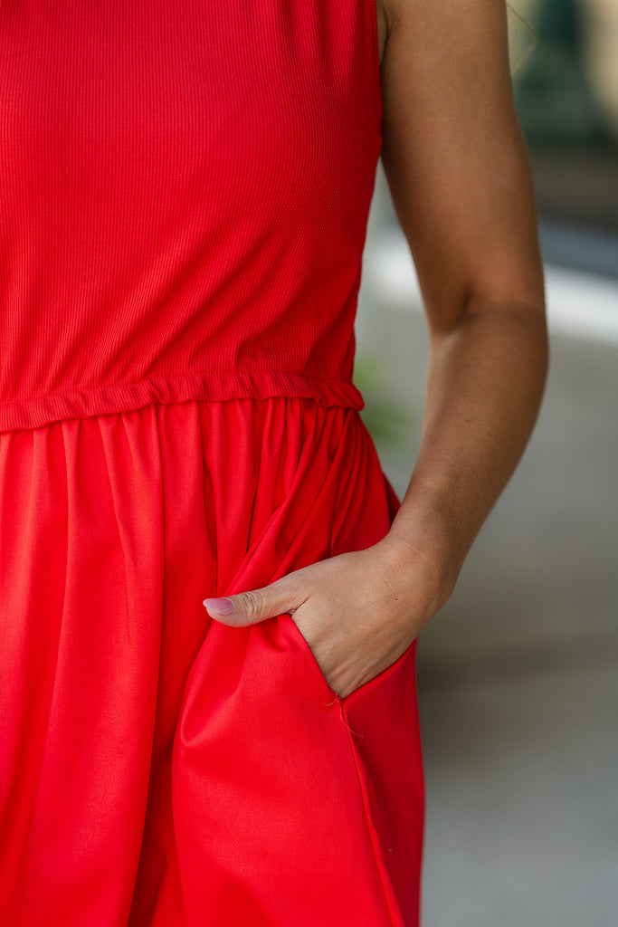 With a ribbed tank top and a blouse-like bottom, this dress is unlike all of the rest! The faux-layered look gives this such a fun and sassy vibe! Just simply add your favorite accessories and footwear to complete the look! Chilly? This goes great with a vest or jacket and boots as well!