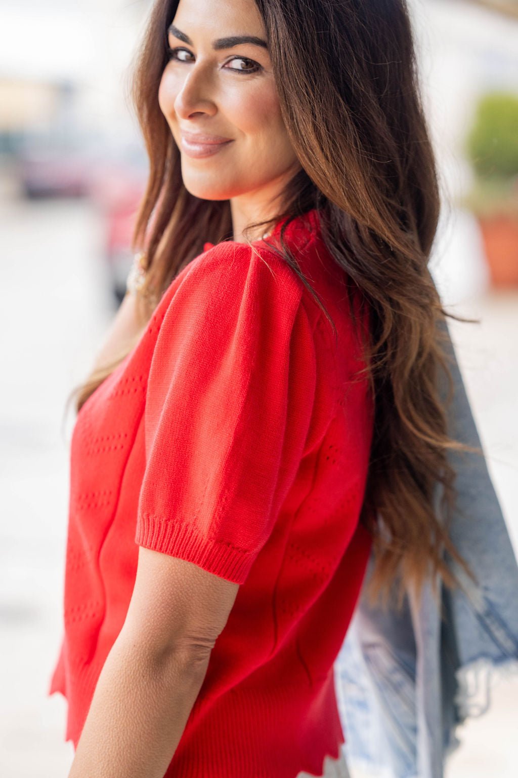 Sweet, feminine, and effortlessly polished — this scalloped knit top is the perfect way to add a little charm to your everyday style. It features a soft, stretchy sweater knit with subtle pointelle detailing and a darling scallop hem that gives it that Betsey’s “special touch.”