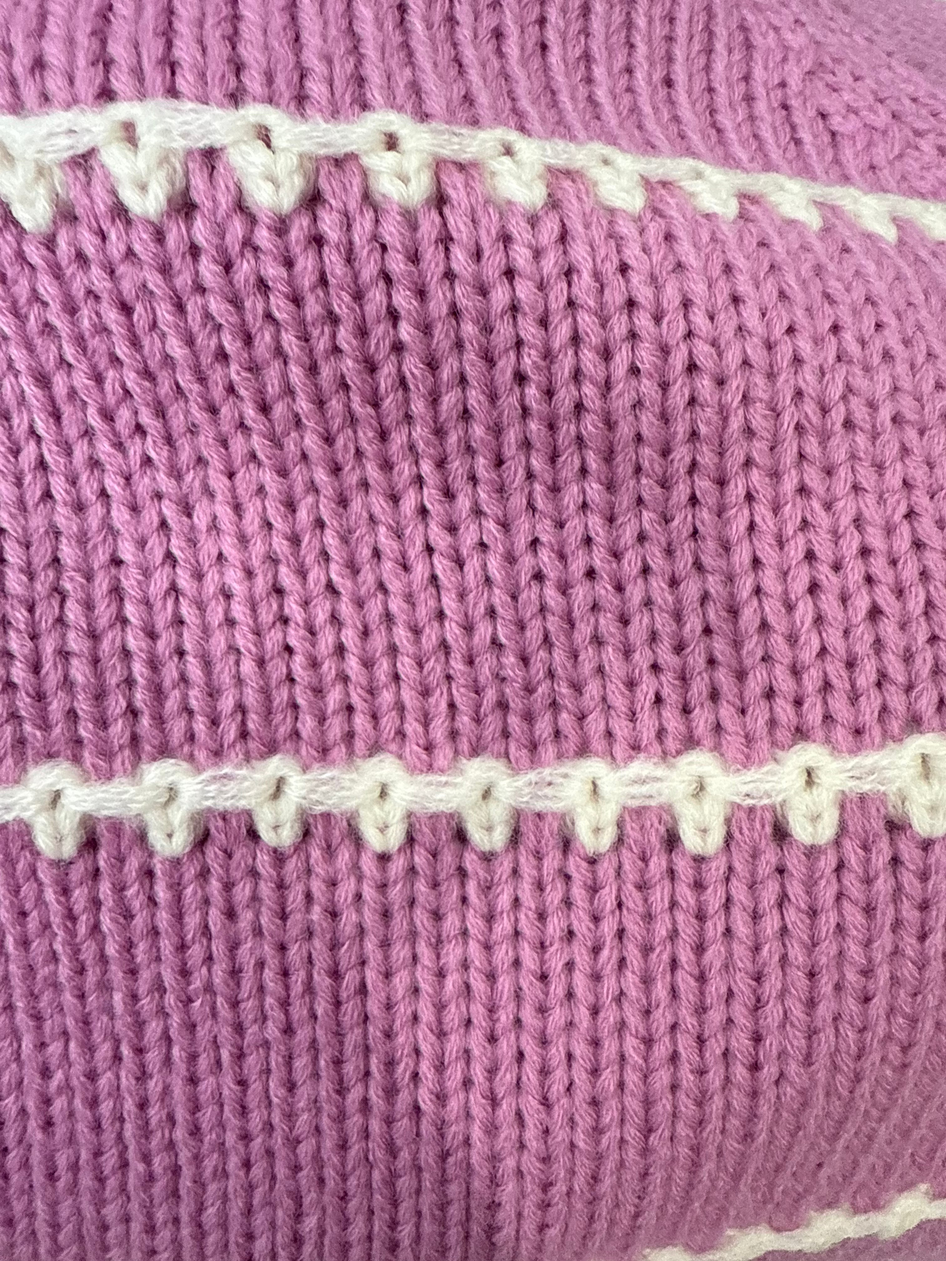Scalloped Stitched Stripes Accented Sweater