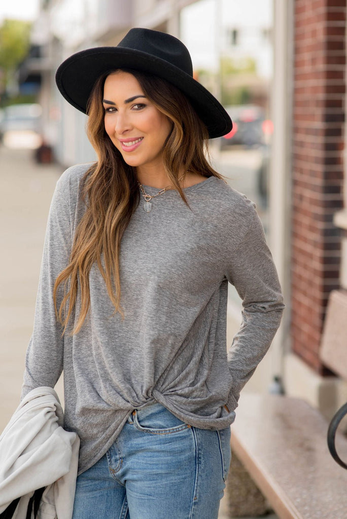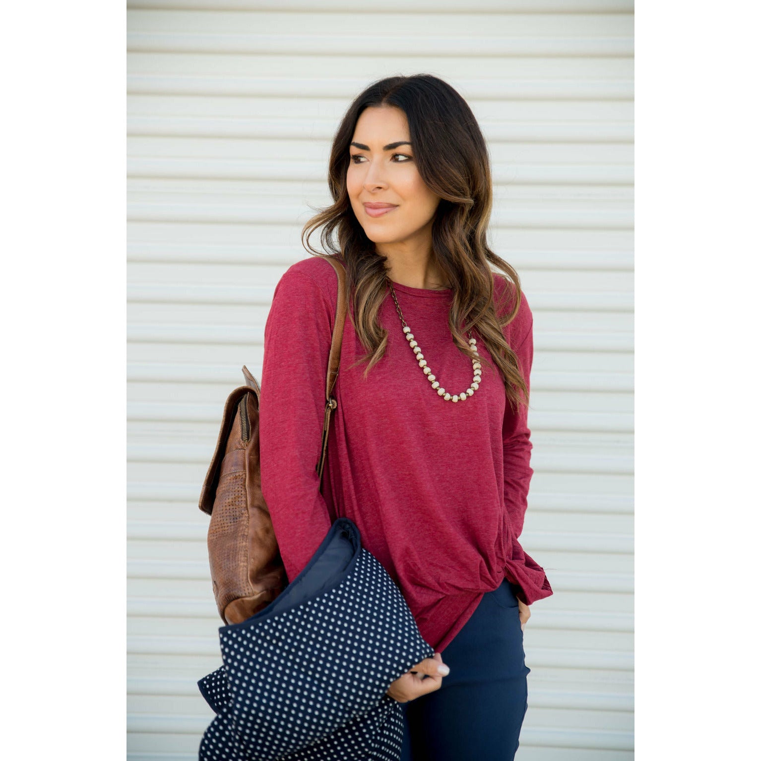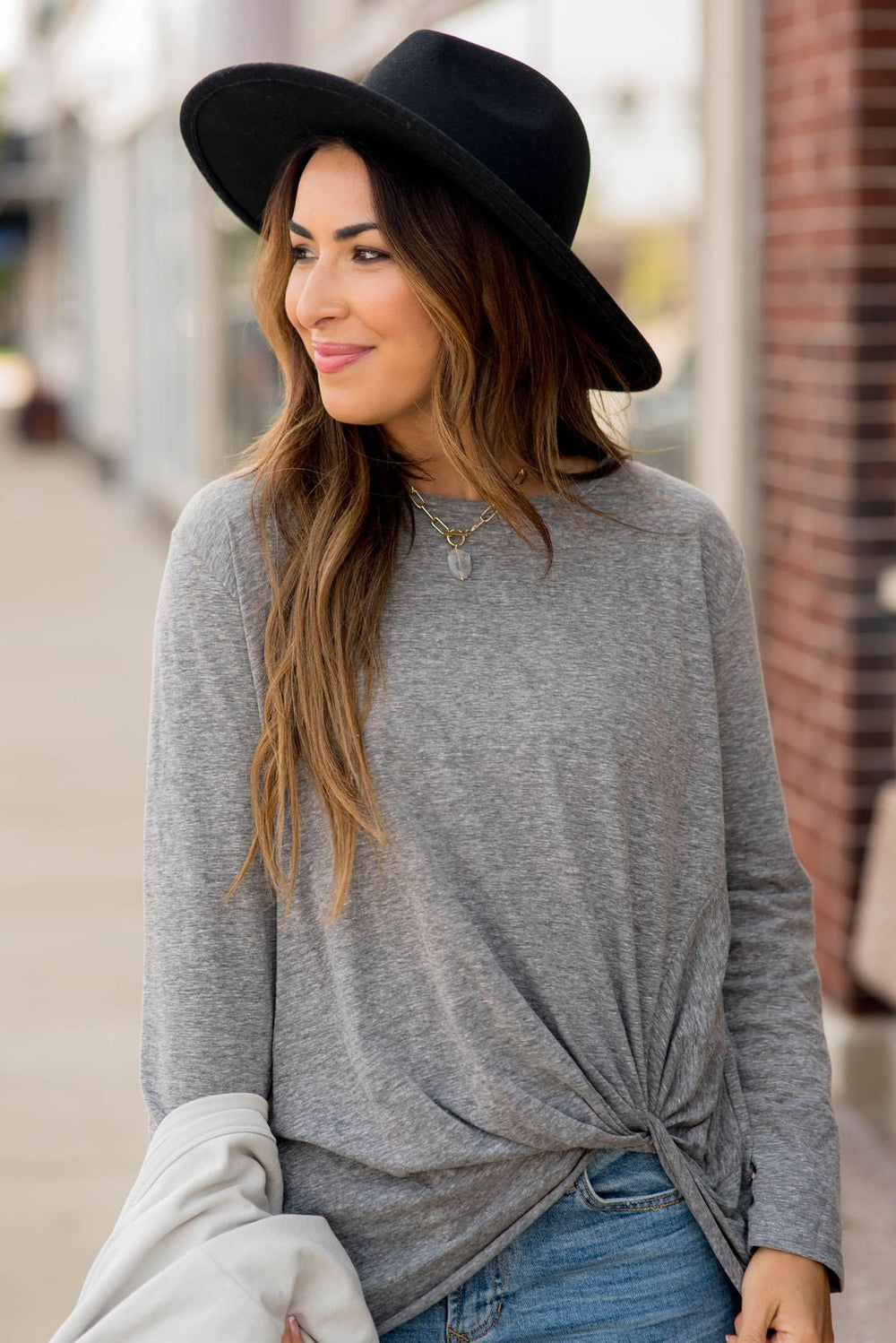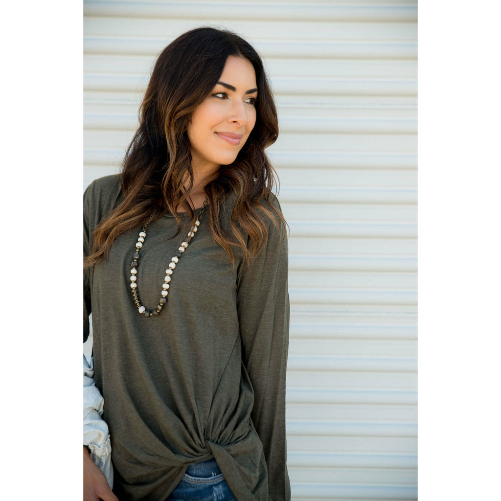 A simple long sleeve tee elevated with a cute side knot accent! This tee is sure to be a staple in your closet with how easy it is to style them! Be sure to snag one in every color!
