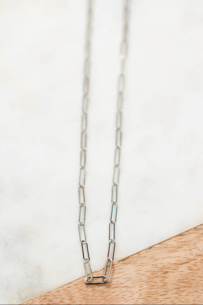 This necklace is your go-to for effortless layering. With its modern paperclip chain design and polished silver finish, this necklace balances edgy and timeless — making it a must-have for everyday wear.