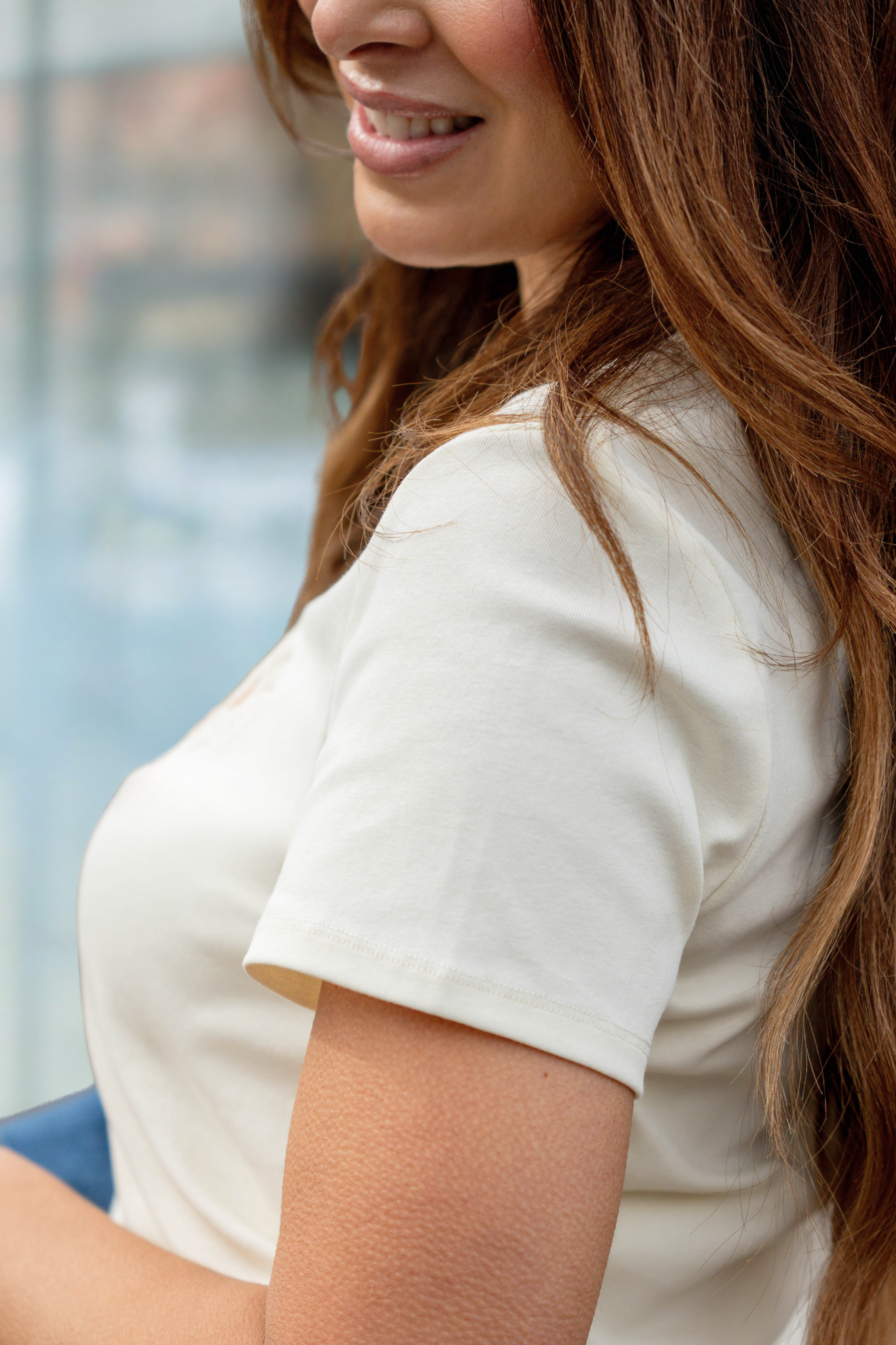 Sweet, simple, and effortlessly pretty—this embroidered daisy tee is a must-have for easy everyday style. The soft knit fabric feels amazing on the skin, while the trio of stitched daisies adds a charming, feminine touch without being too bold.
