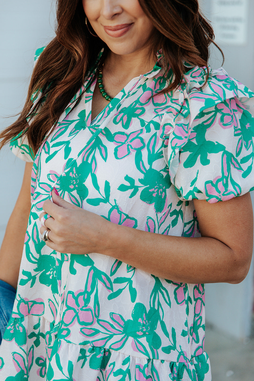 This dress gives us major feminine and flirty vibes! The lightweight and breathable material makes it ideal for those hot days but this can just as easily be layered with a cardigan or denim jacket and boots! The flowy fit makes this perfect for all body shapes and sizes and we're loving the puff sleeves to set it apart from the rest!