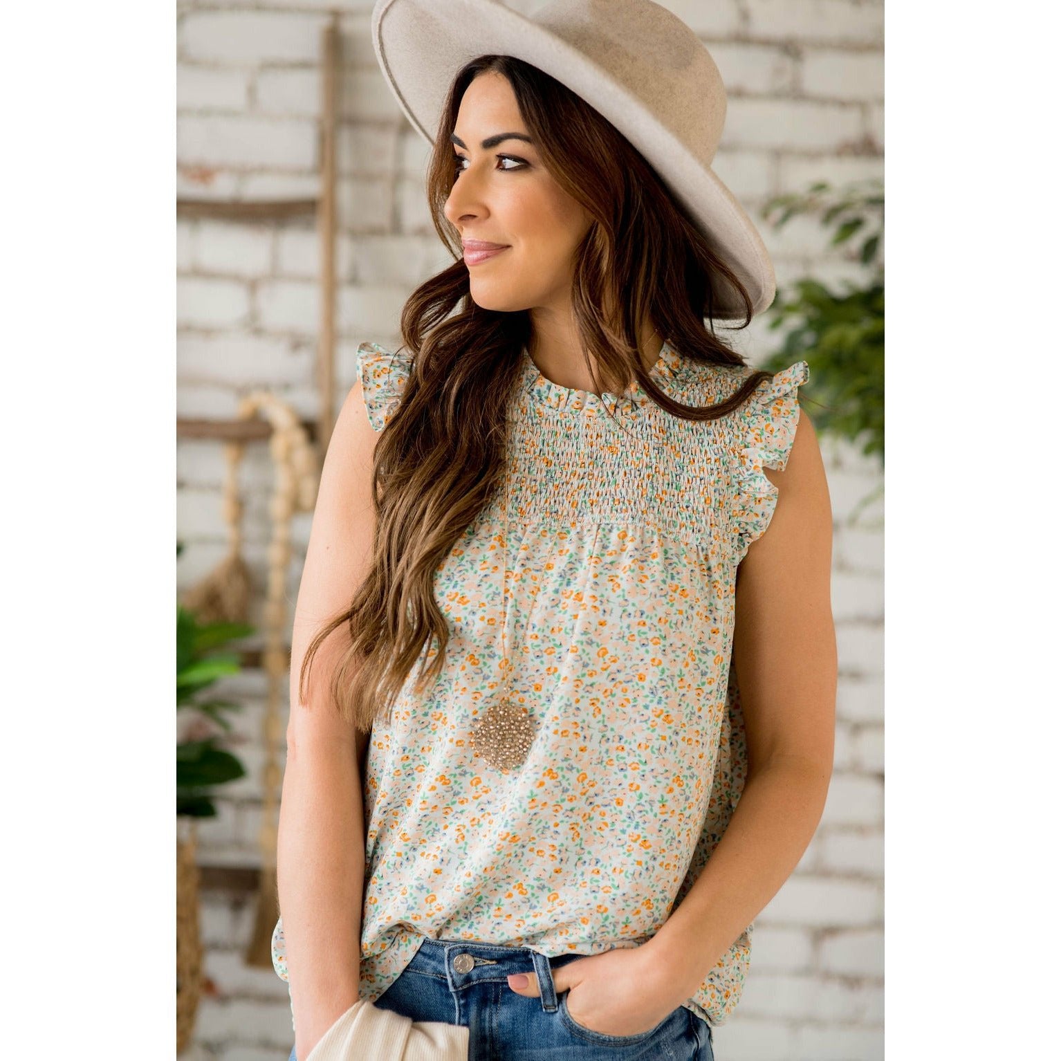 Smocked Floral Tank