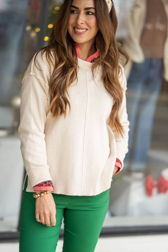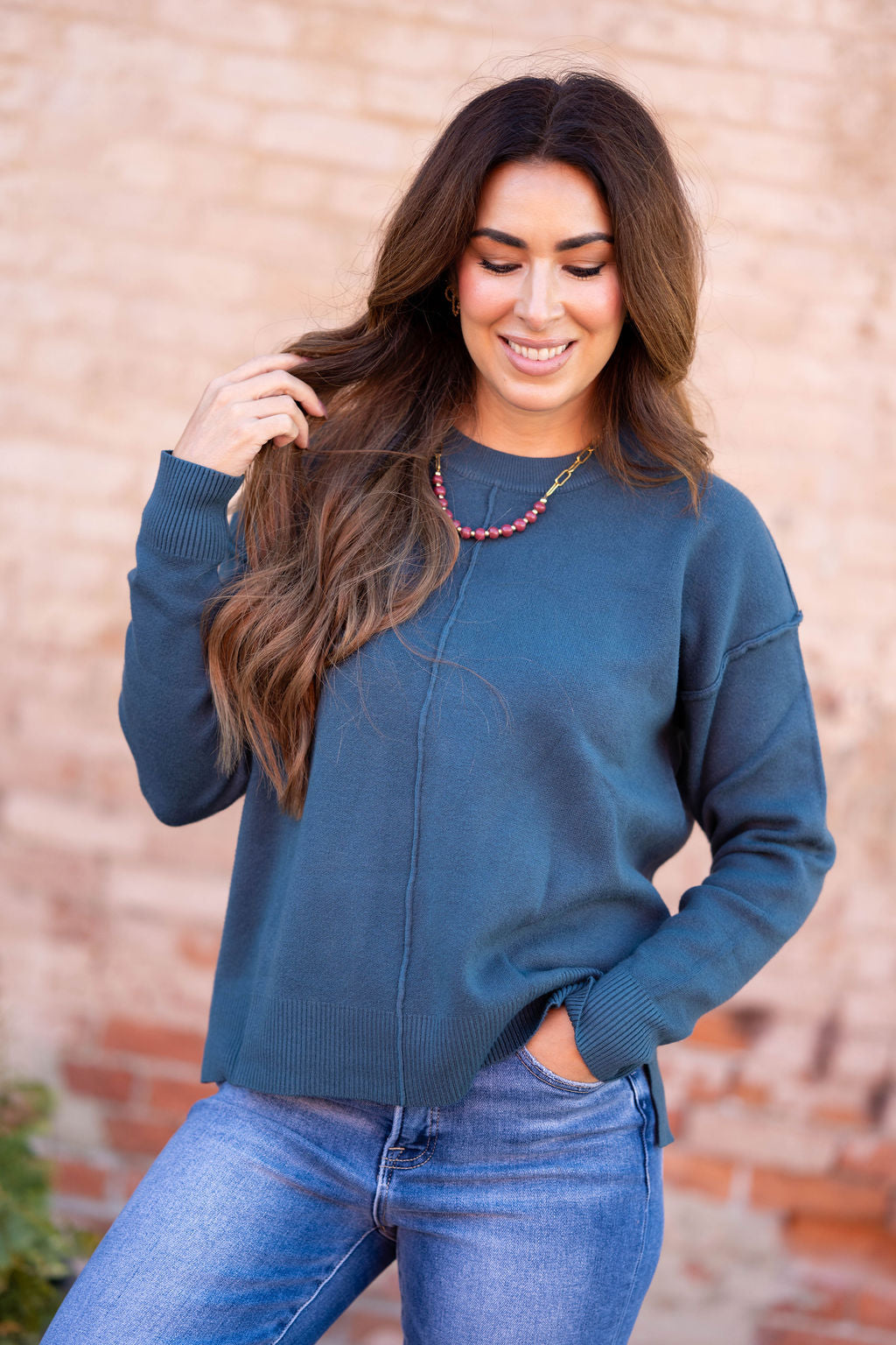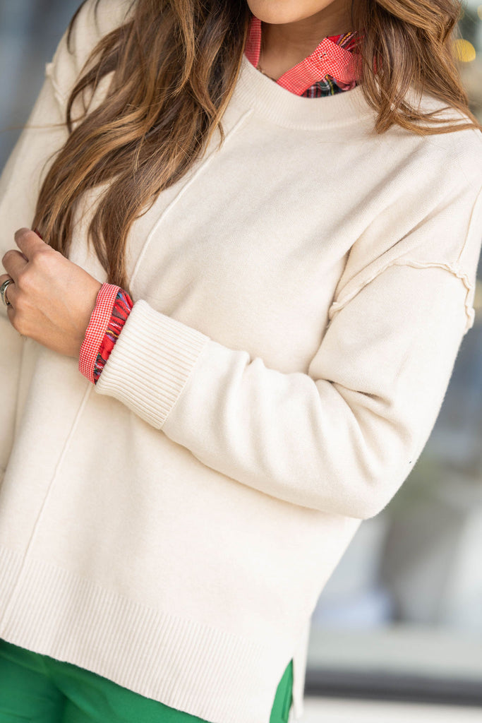 Effortlessly cozy with a clean, modern edge—this Soft Stitch Front Seam Sweater is the perfect everyday layer. The relaxed fit and ultra-soft knit make it comfortable for all-day wear, while the exposed seam detailing adds just the right amount of character.