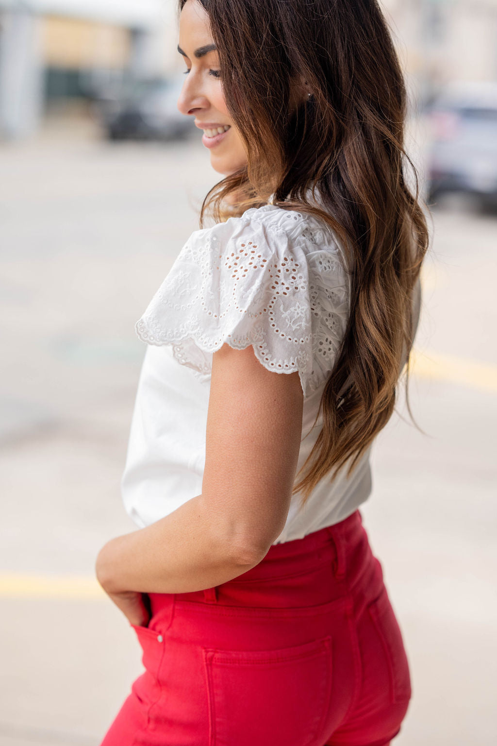 Soft Whimsy Eyelet Sleeve Blouse