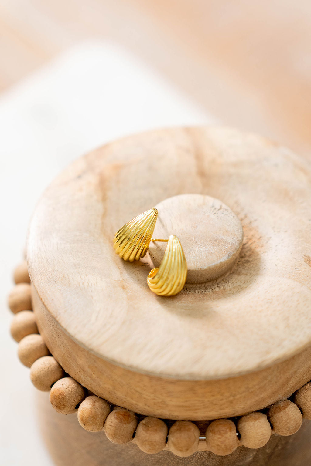 Strong yet stylish. These golden teardrops radiate confidence, adding texture and edge to both casual and dressed-up looks.