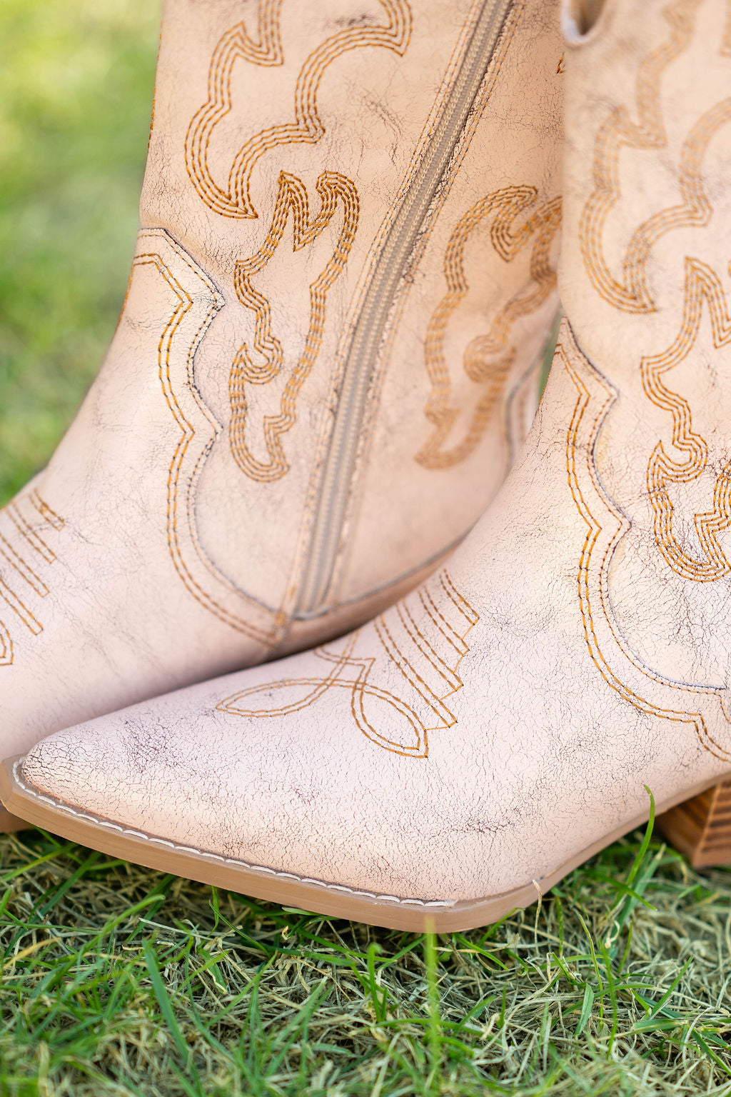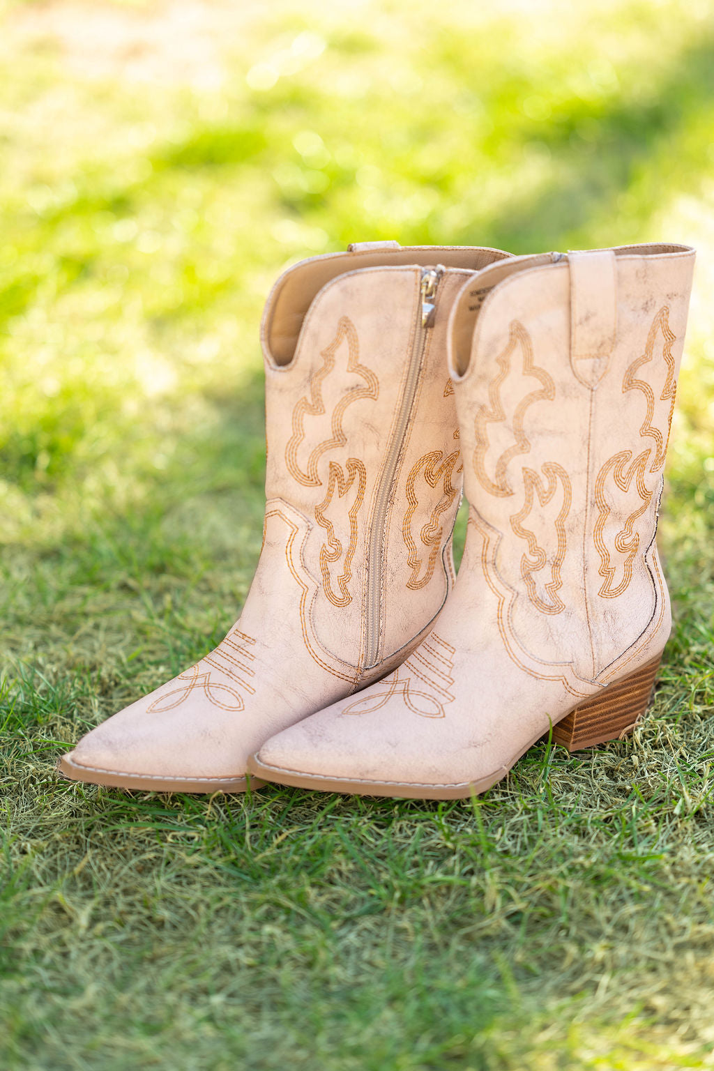 Step into standout style with the Corky’s Somebody’s Problem Boots—your new go-to for every outfit that needs a little extra attitude. These cream-toned Western boots feature classic stitching, a pointed toe, and a stacked heel that gives you just the right lift without sacrificing comfort.