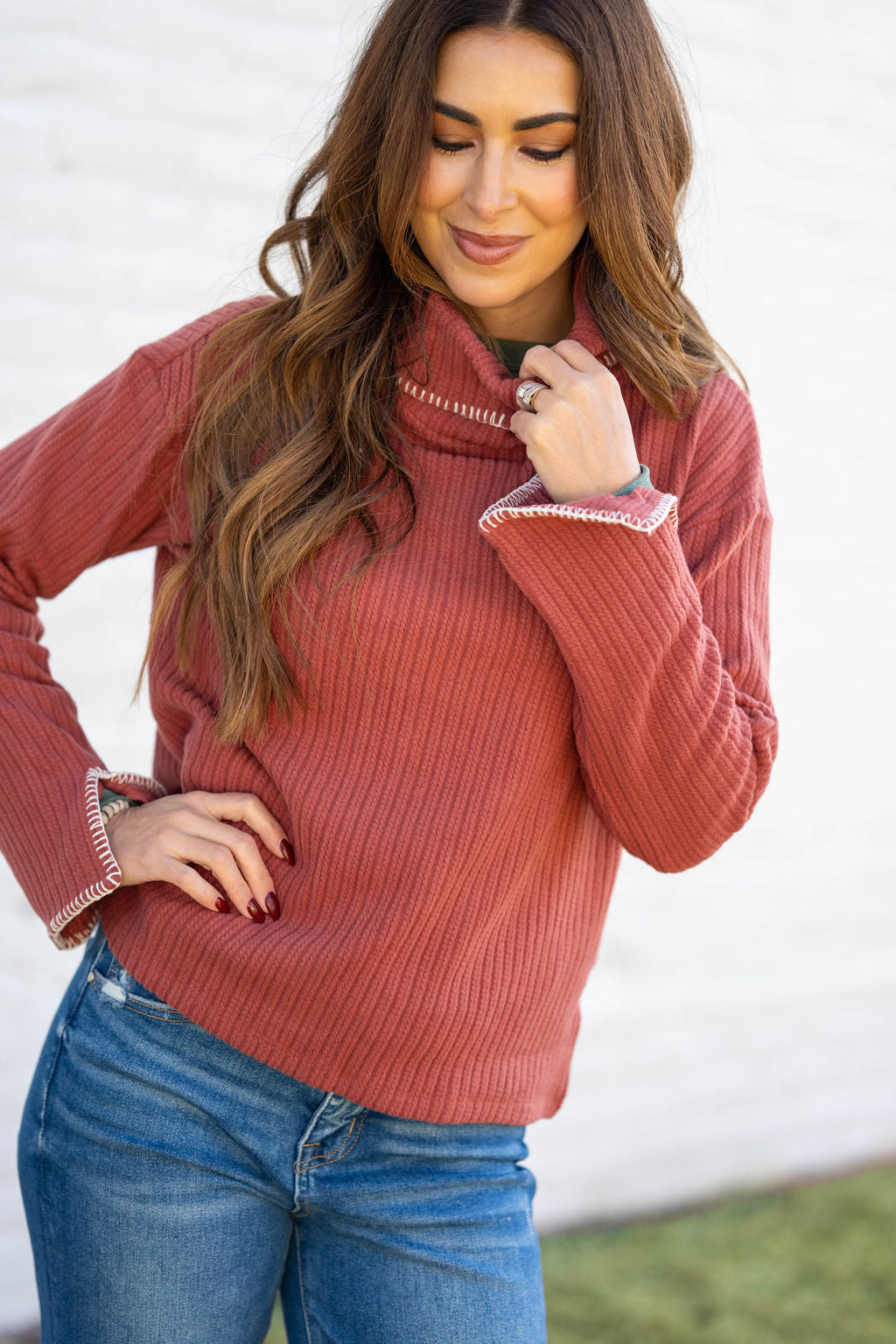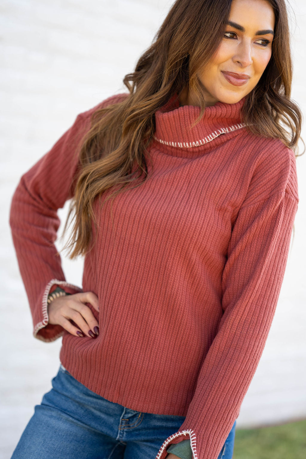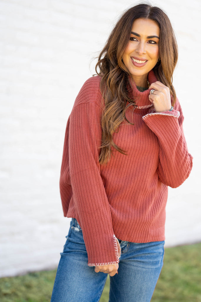 We just don't think you can ever have too many sweaters! This warm and cozy sweater has a fun texture and bold stitched accents around the trim that give it a unique and edgy feel! Pair with a skirt, jeans, joggers, leggings, or elevate with our Betsey's Jeggings! Chilly? Add a vest with ease!