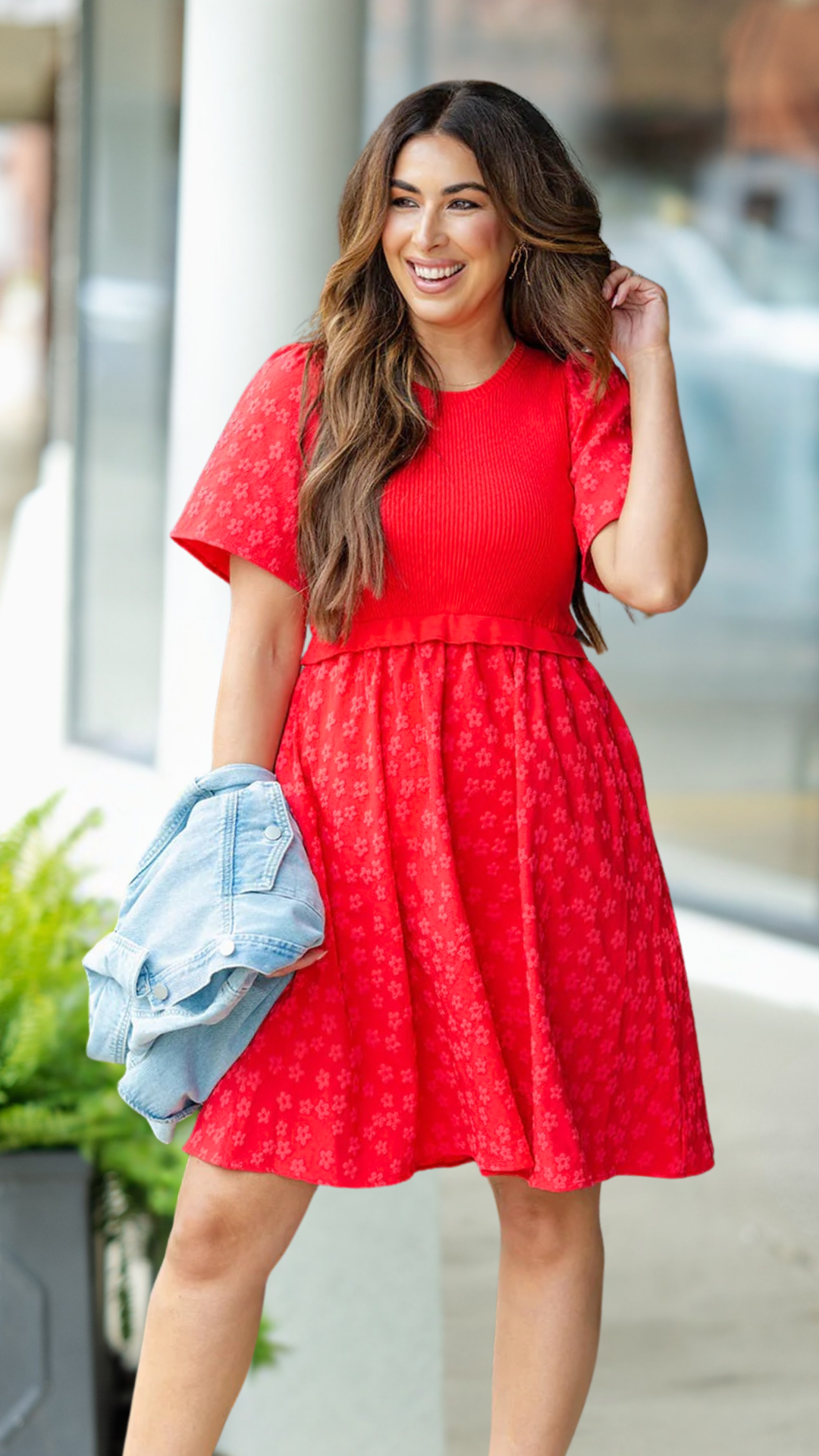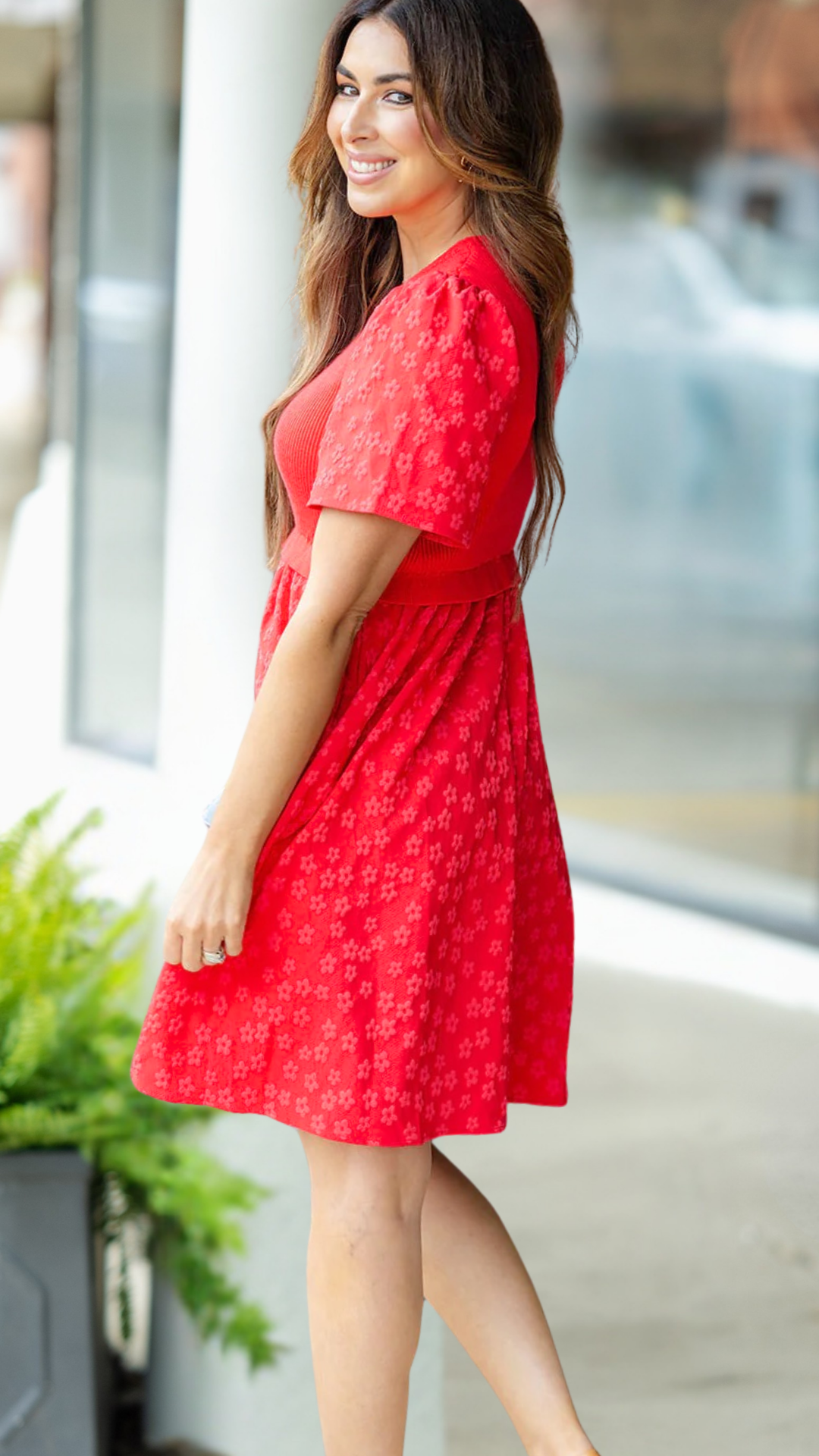 This dress is one-of-a-kind! The ribbed sweater-vest looking body makes the subtle daisy printed cap sleeves and bottom pop! We love how easy this is to throw on with a pair of sandals or flats and your favorite accessories but this also can be elevated with heels and a blazer, cardigan, or jacket!